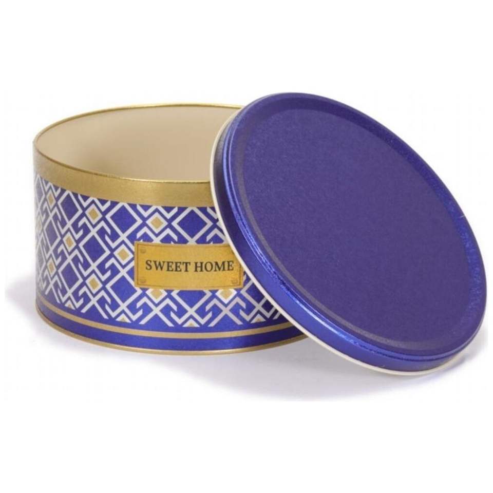 4.1L Tapa deslizante Diseño de patrón sin costuras Líneas geométricas Fondo azul Ø 215x120mm Recipiente redondo Latas de metal Fondo azul