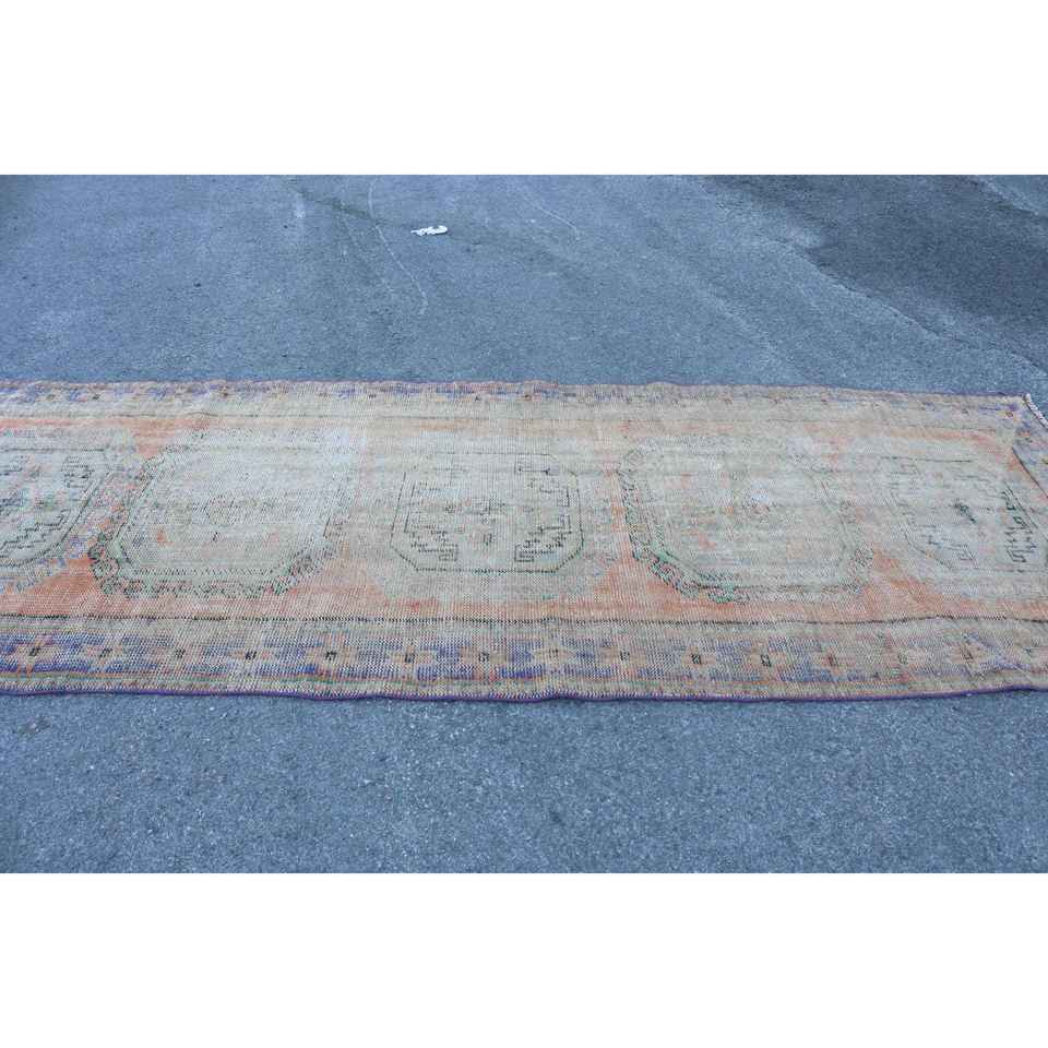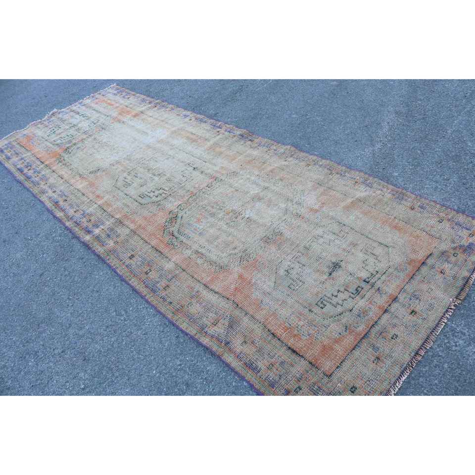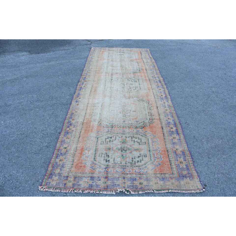 Alfombra de 4.1x11.1 pies, Alfombra Turca Vintage, Alfombra de Lana Azul