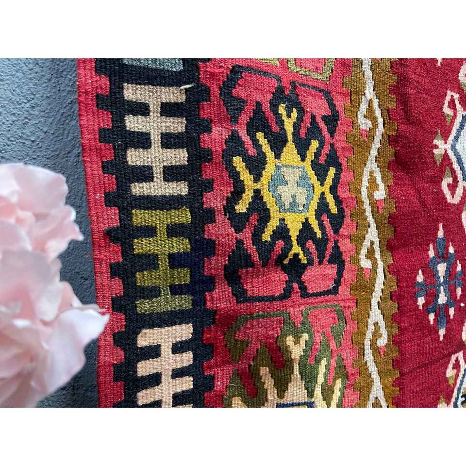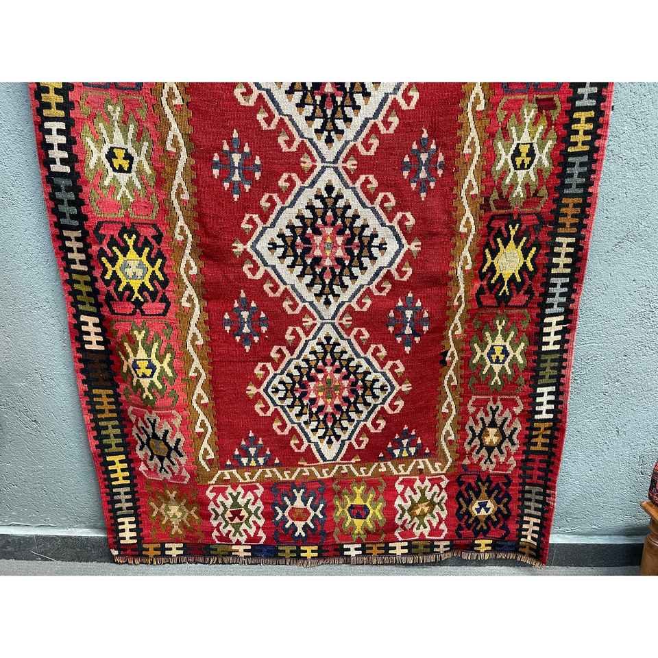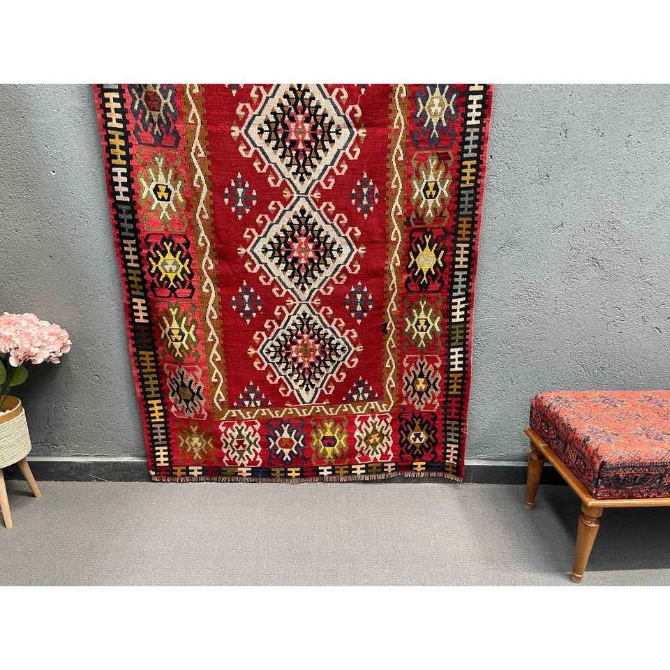 Alfombra Vintage de 4.1x6.1 pies, Alfombra Turca, Alfombra Persa Roja y Azul