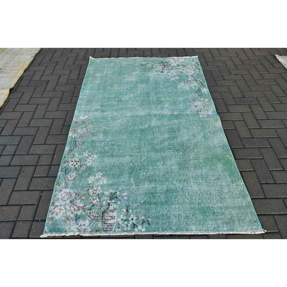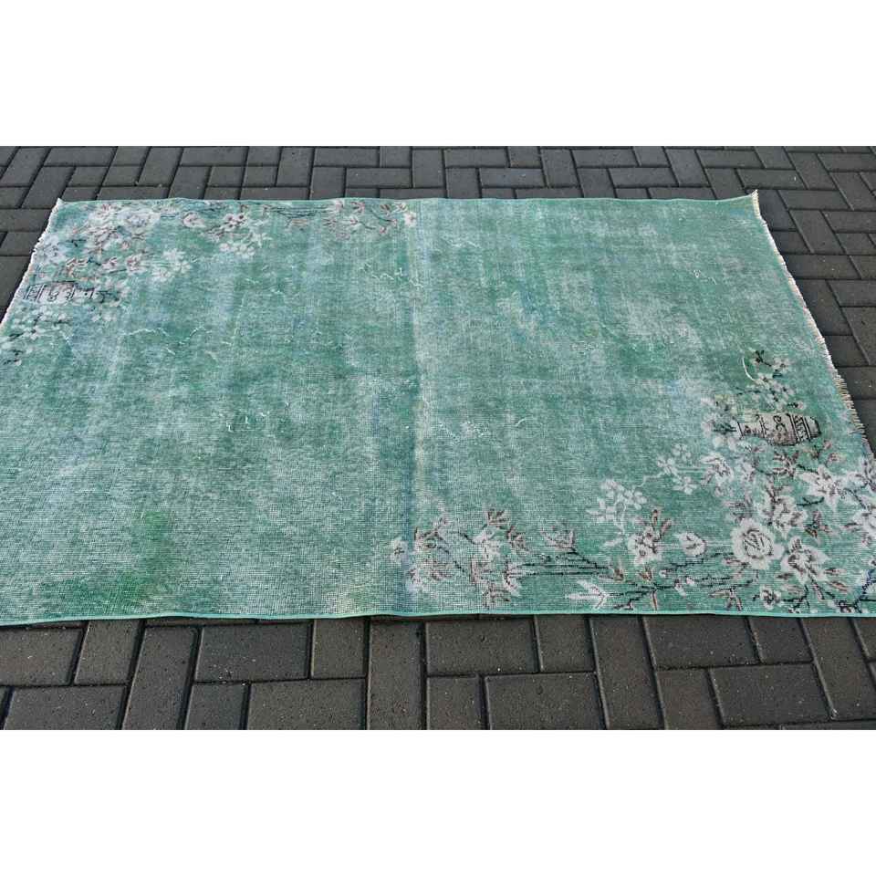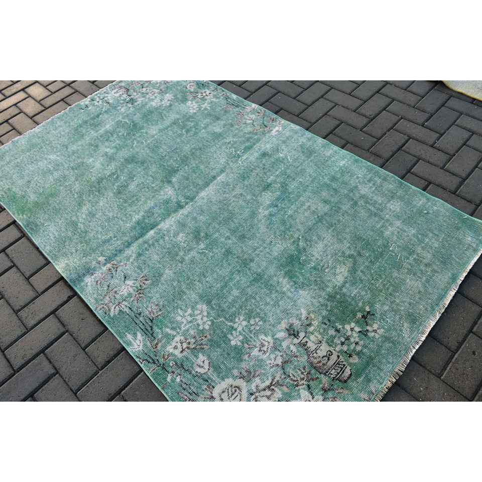 Alfombra vintage de 4.1x6.6 pies, alfombra turca de lana con motivos de plantas y árboles verdes