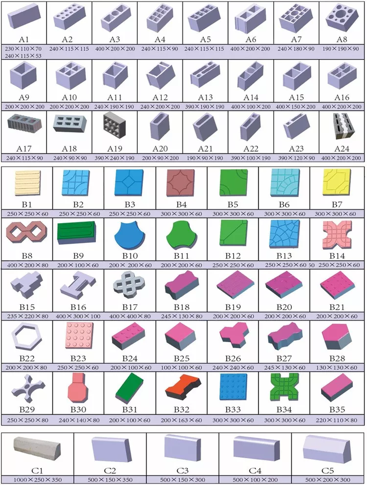 400*100*200mm, 390*190*190mm, 400*120*200mm, 200*100*60mm, 300*150*100mm, 400*150*200mm, 240*115*90mm, 200*200*60mm, 150*150*100mm, 400*200*200mm, 230*220*115mmTamaño de ladrillo