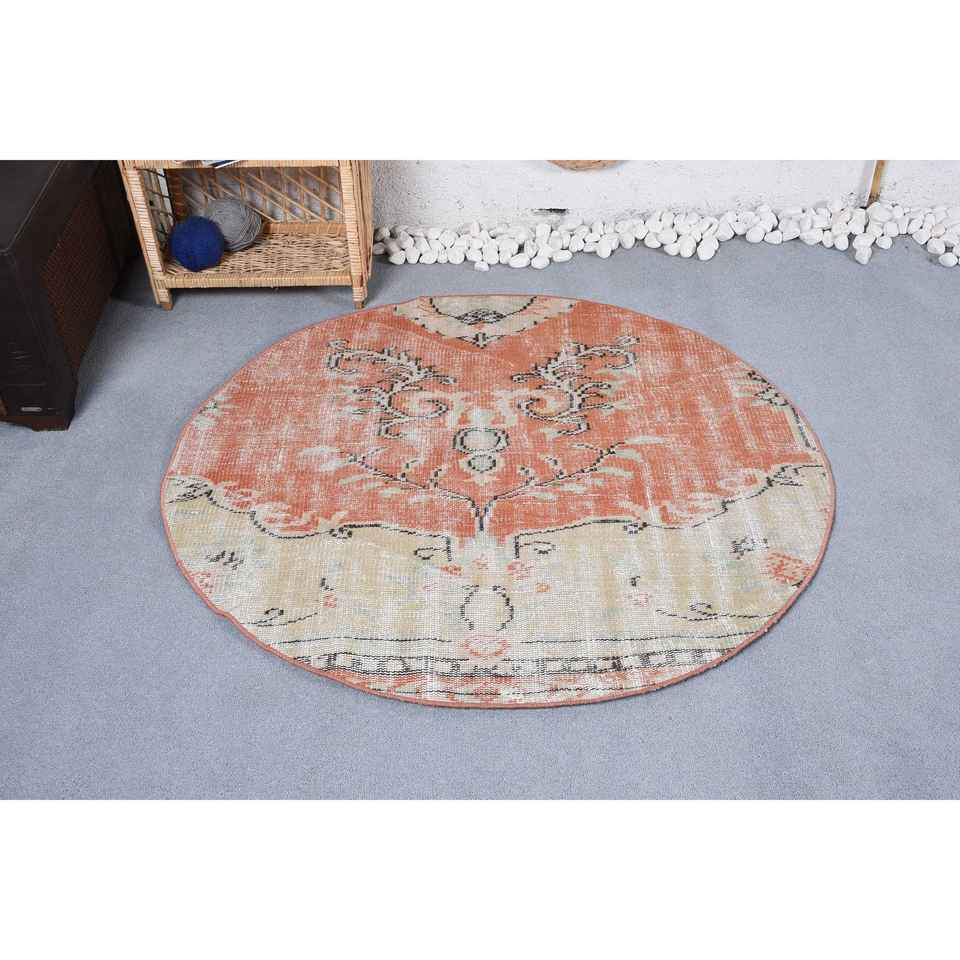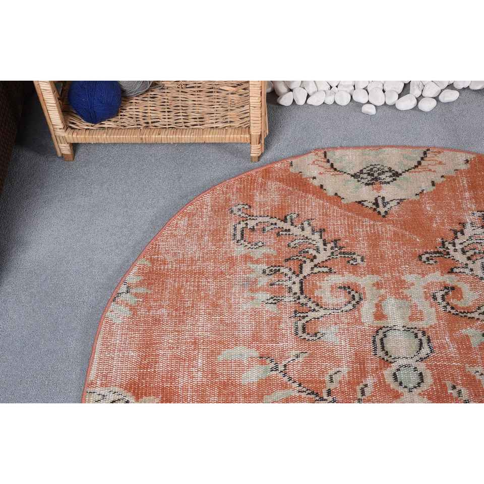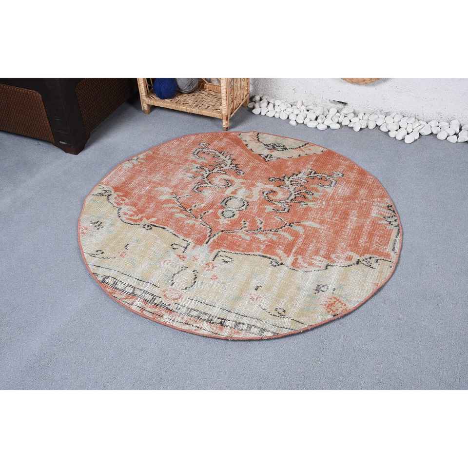 Alfombra de 4,2x4 pies, Alfombra Redonda Vintage, Alfombra Abstracta Naranja