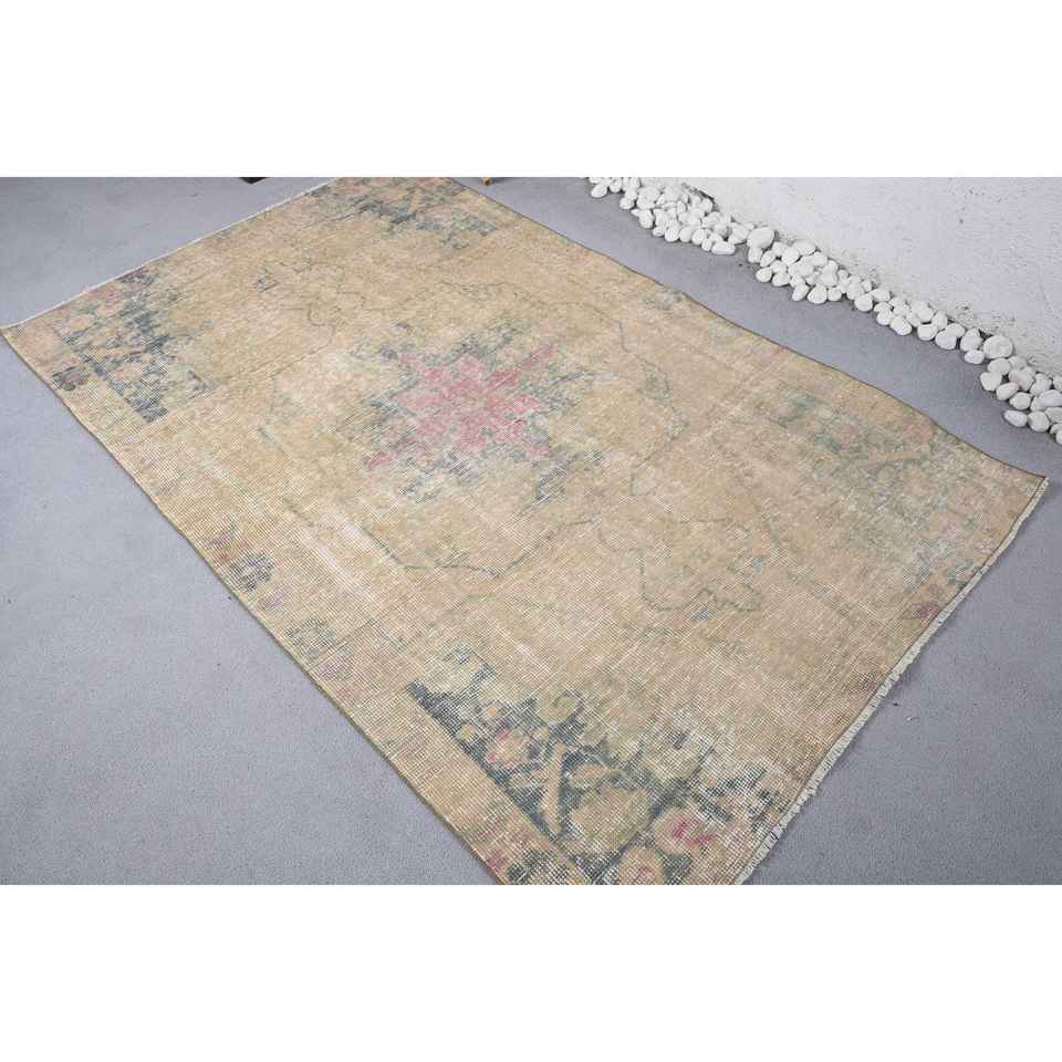 Alfombra Turca de 4.2x6.7 pies, Alfombra Vintage, Alfombra Degradada Beige y Azul