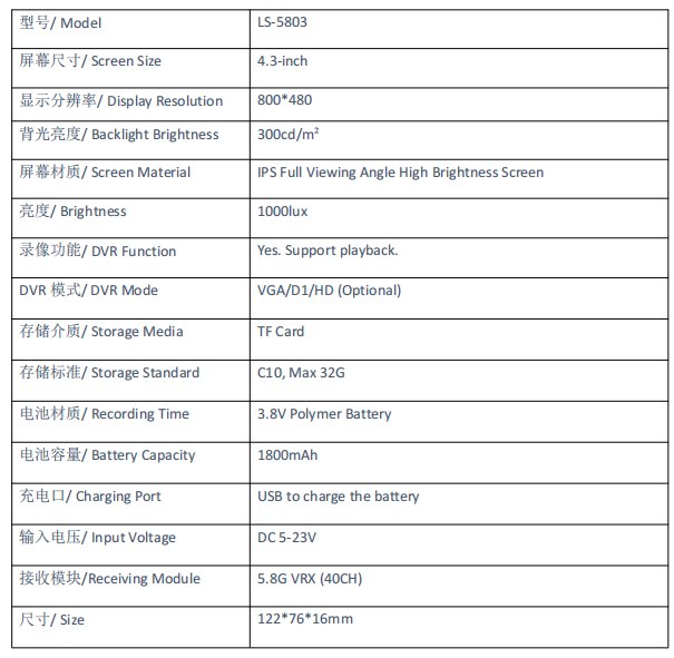 Pantalla LCD IPS SPI de 4.3 Pulgadas, Monitor FPV de 5.8G con DVR, 40 Canales, 16:9, NTSC/PAL, Búsqueda Automática, Grabación, Resolución 800x480, VGA/D1/HD RC