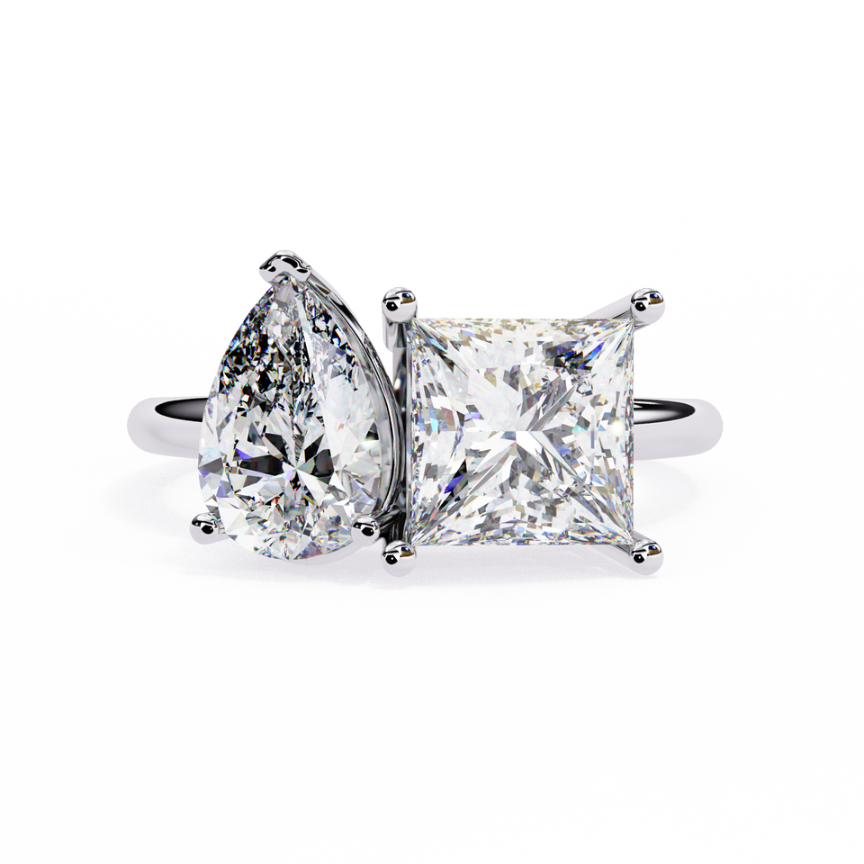 4.30CT Anillo de compromiso de diamante cultivado en laboratorio Oro sólido de 14K con certificado IGI Pera Princess Toi Et Moi Style