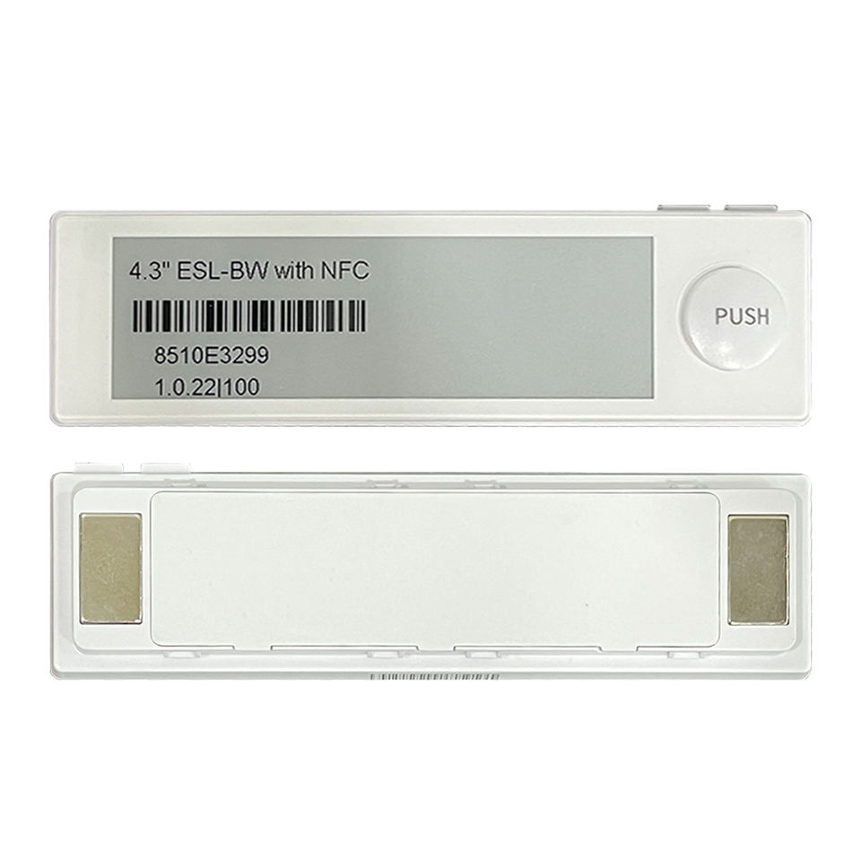Etiquetas Electrónicas de Estante de 4.3 Pulgadas con Tinta Electrónica de 2 Colores, con Imán de ABS para Almacenes, Centros Comerciales, con NFC e IoT