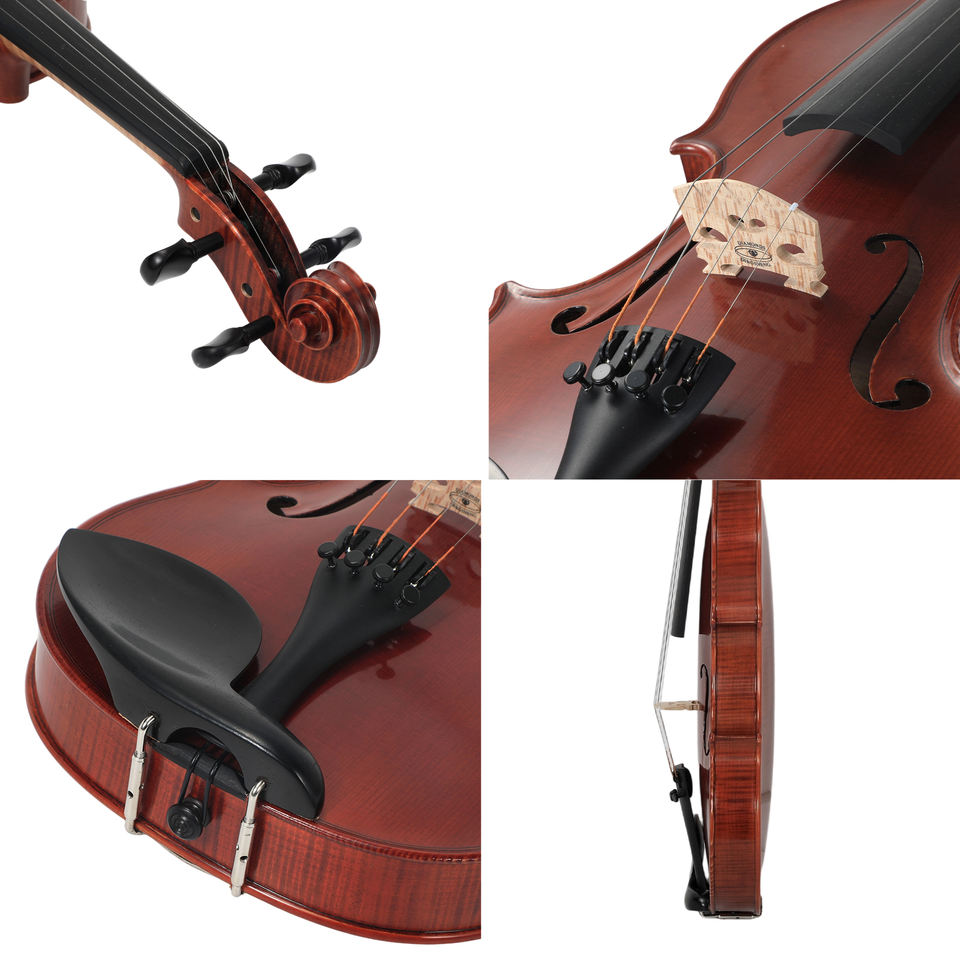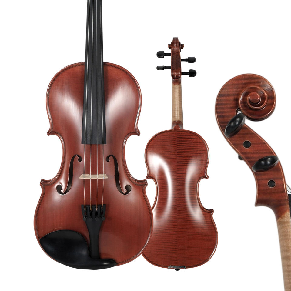 Violín de Madera Artesanal Tamaño 4/4 para Solista: Fondo de Arce Flameado Estilo Antiguo, Acabado con Mezcla de Aceite y Resina, Configuración Resistente al Clima