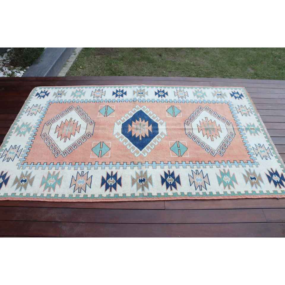 Alfombra Vintage de 4.4x7.2 pies, Alfombra Oriental Turca de Lana Azul