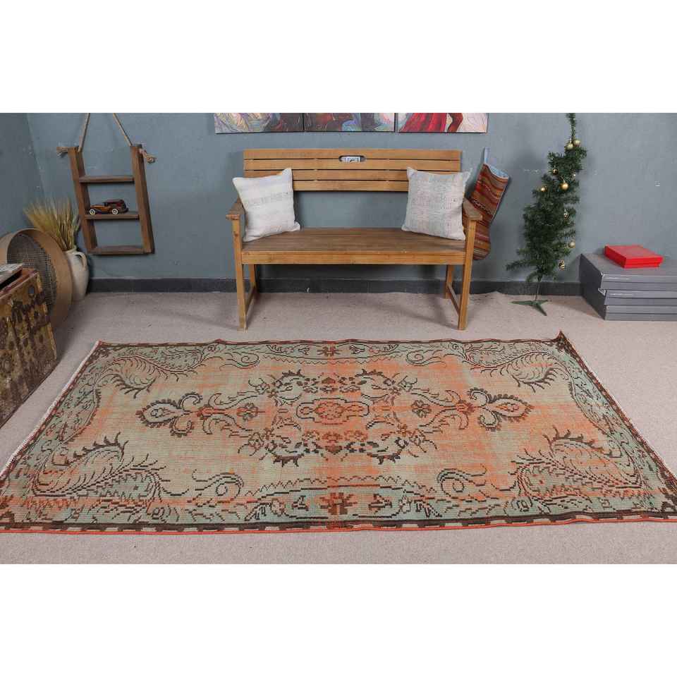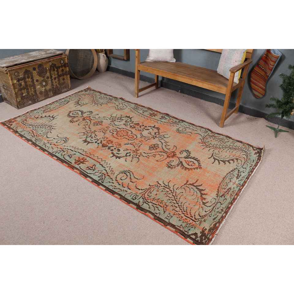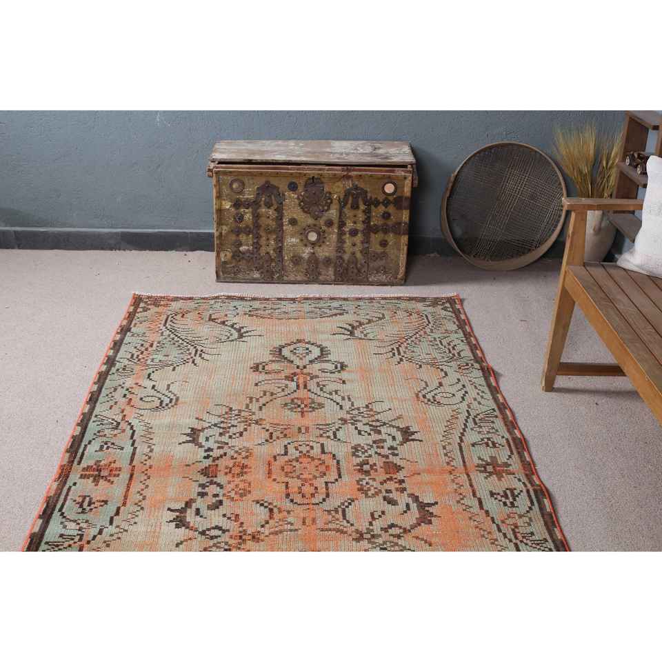 Alfombra Vintage de 4.4x8.1 pies, Alfombra, Alfombra Floral Naranja de Lana