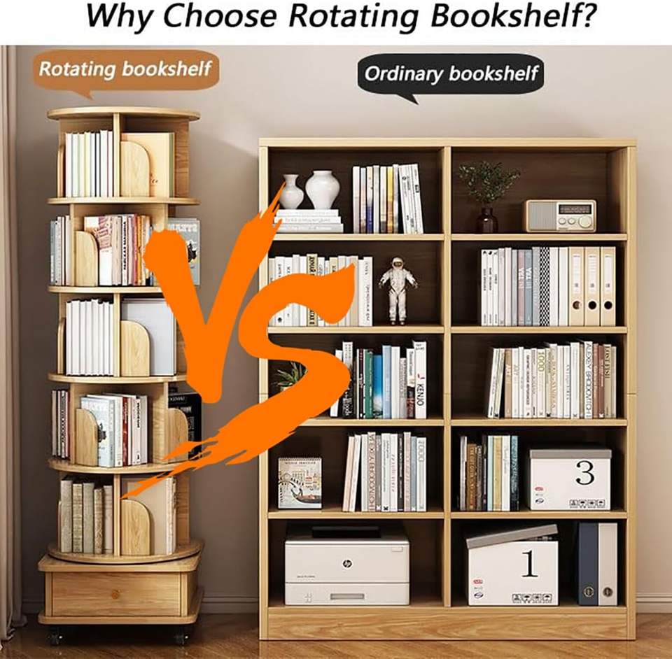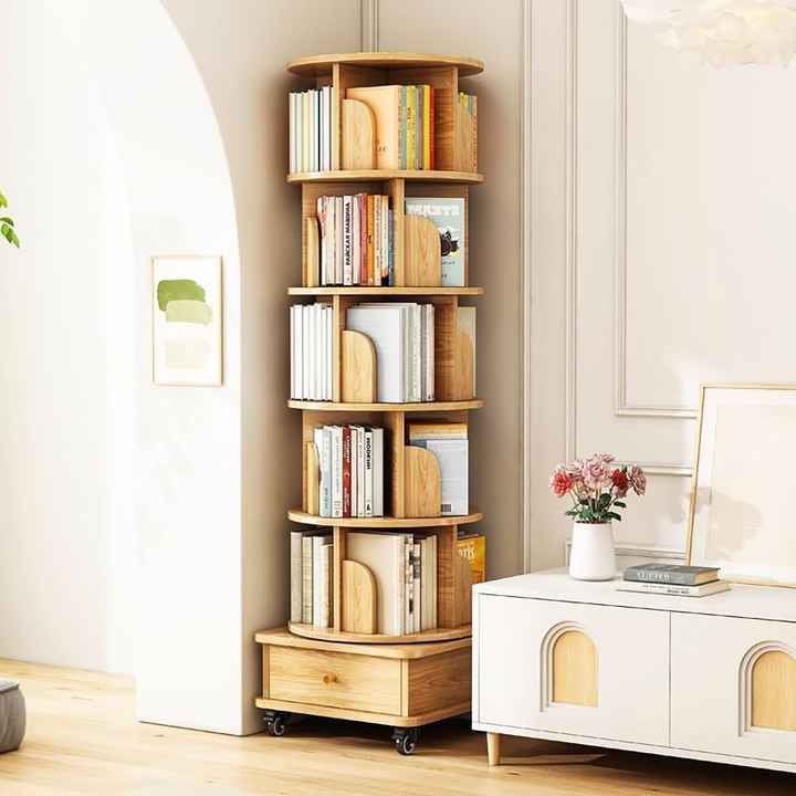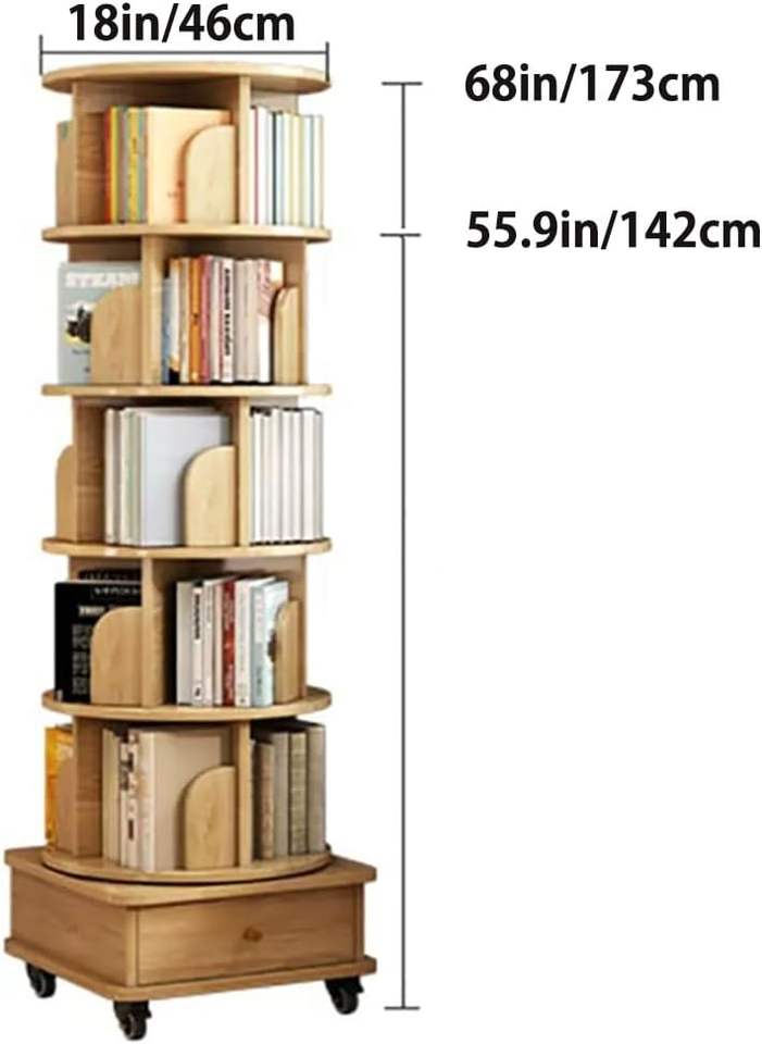 Estantería giratoria de 4/5 niveles, estantería de esquina de madera para libros, estantería estrecha de rotación de 360 ° con estanterías de ruedas universales silenciosas