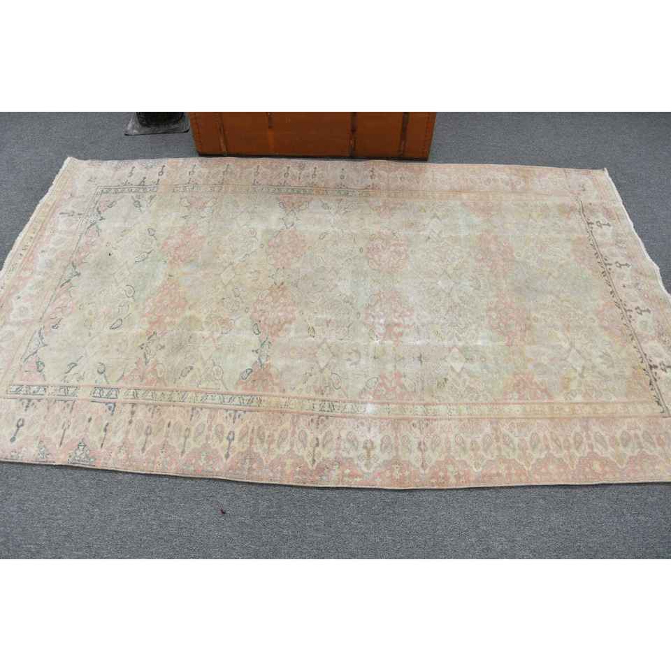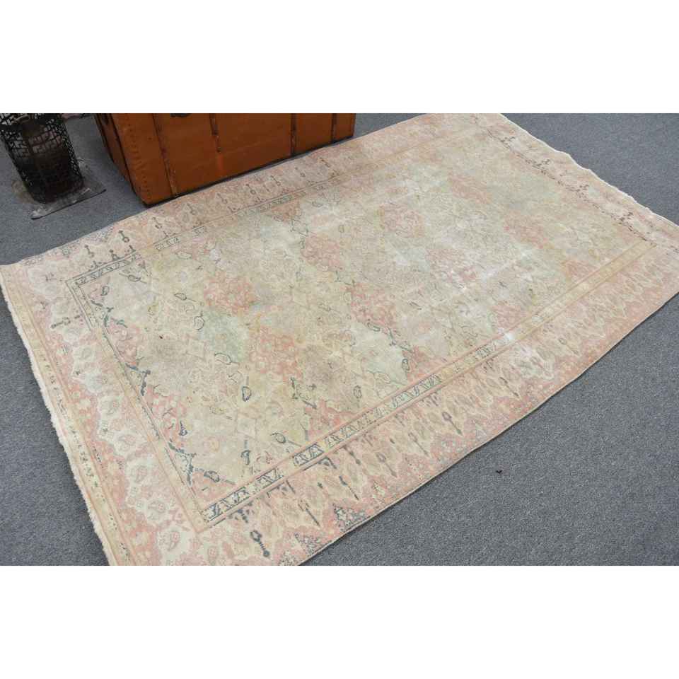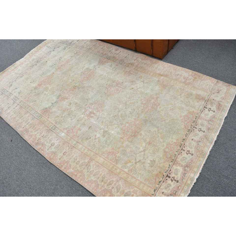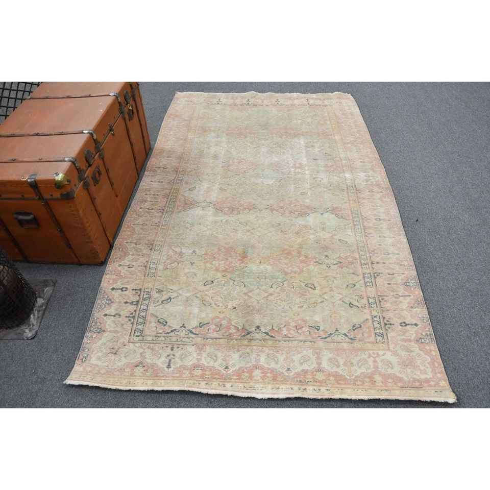 Alfombra Turca de 4.5x7.5 pies, Alfombra Vintage, Alfombra de Lana con Borde Azul