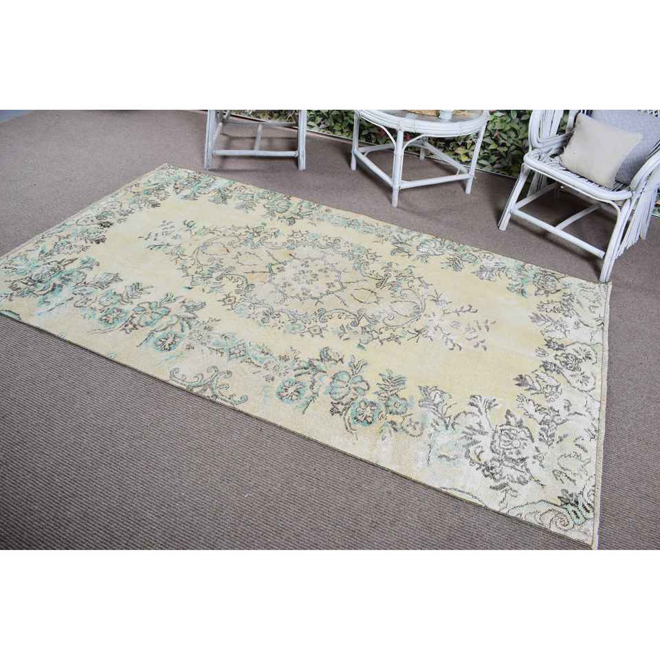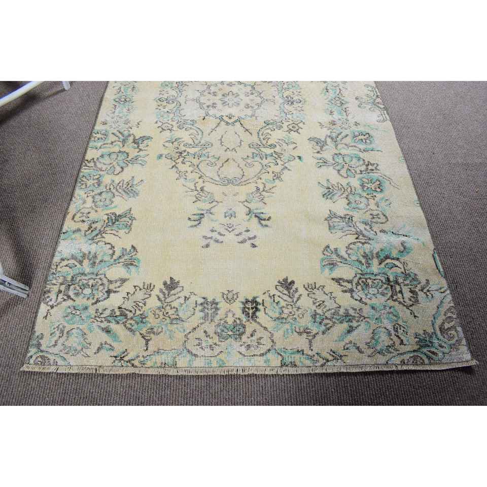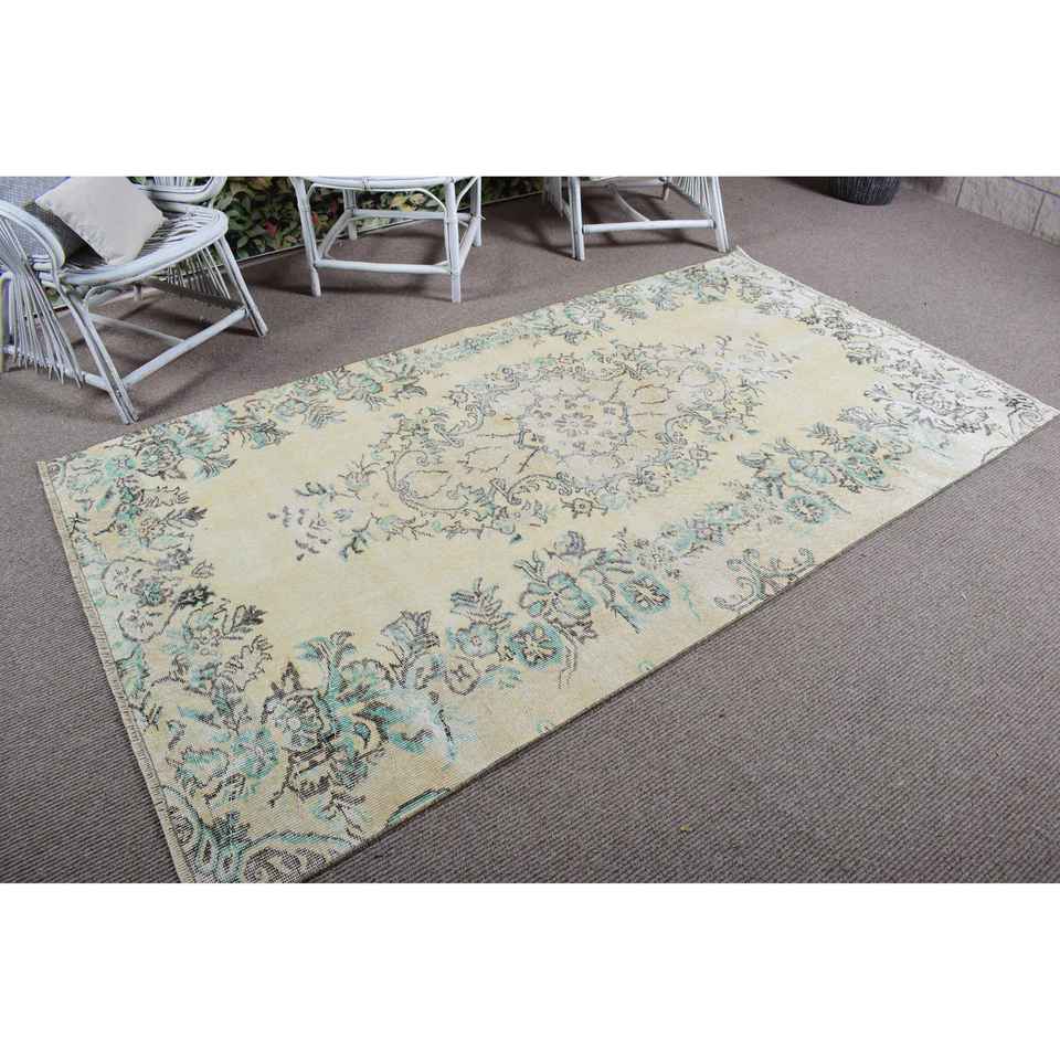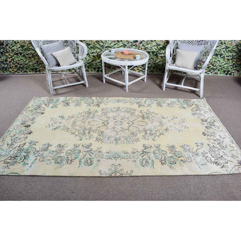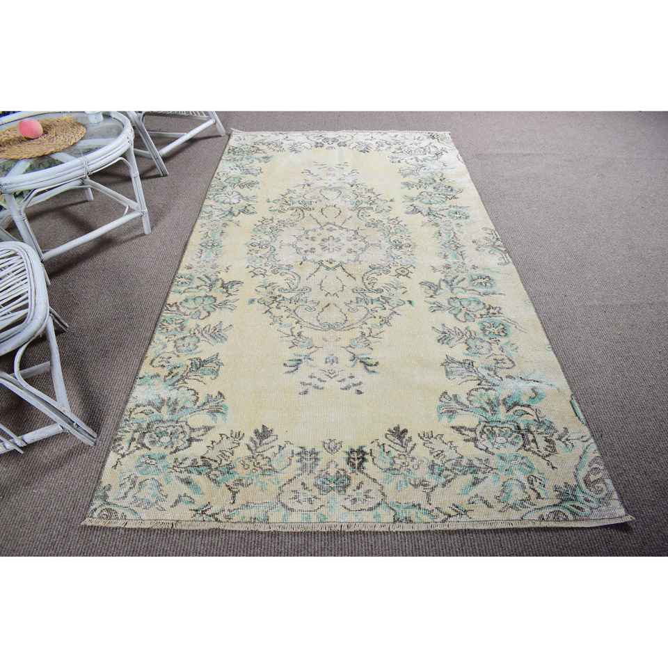 Alfombra Vintage de 4.5x7.8 pies, Alfombra Turca, Alfombra Marroquí Azul y Blanca