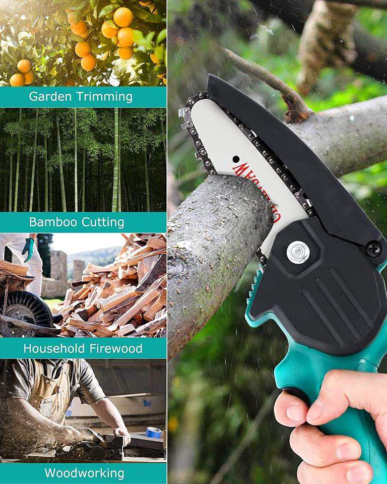 Minimotosierra Eléctrica Inalámbrica Industrial de 4/6 Pulgadas para Exteriores, con Batería de 21V y 4500 RPM, para Jardinería, Poda y Corte de Madera