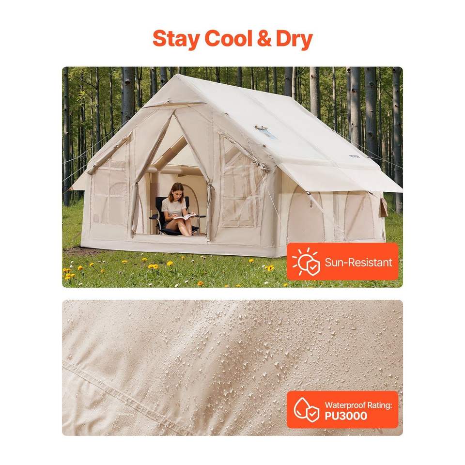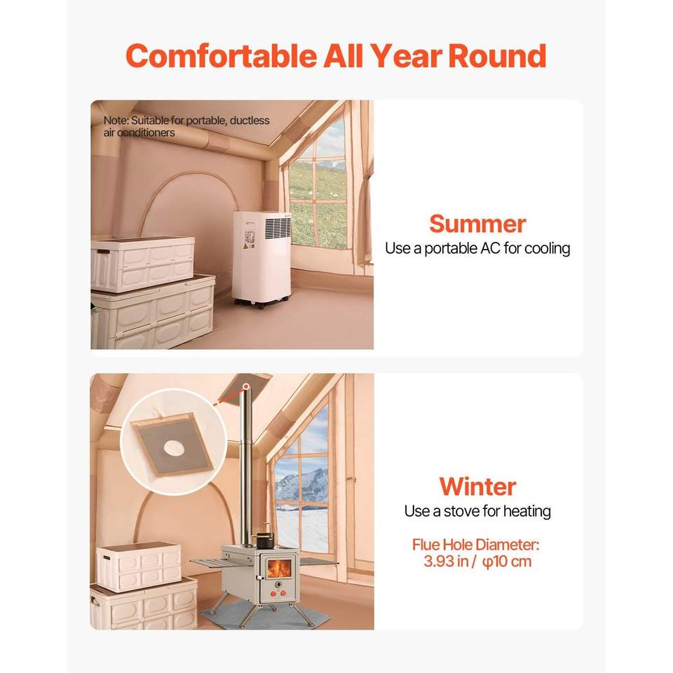 Carpa Inflable para 4-6 Personas, Fácil de Instalar, Carpa Glamping Inflable con Bomba Manual, Carpa Oxford 300D para 4 Estaciones, Apta para Estufa