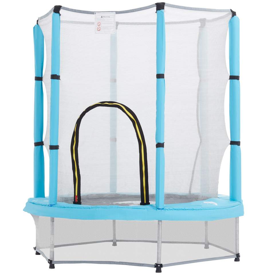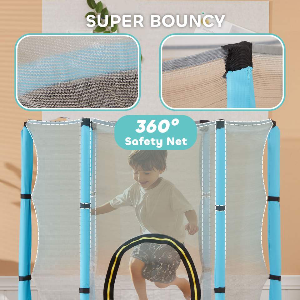 Trampolín Infantil de 4.6 Pies con Diseño de Delfines Azul Claro, con Red de Seguridad, Trampolín Recreativo para Uso en Interiores y Exteriores