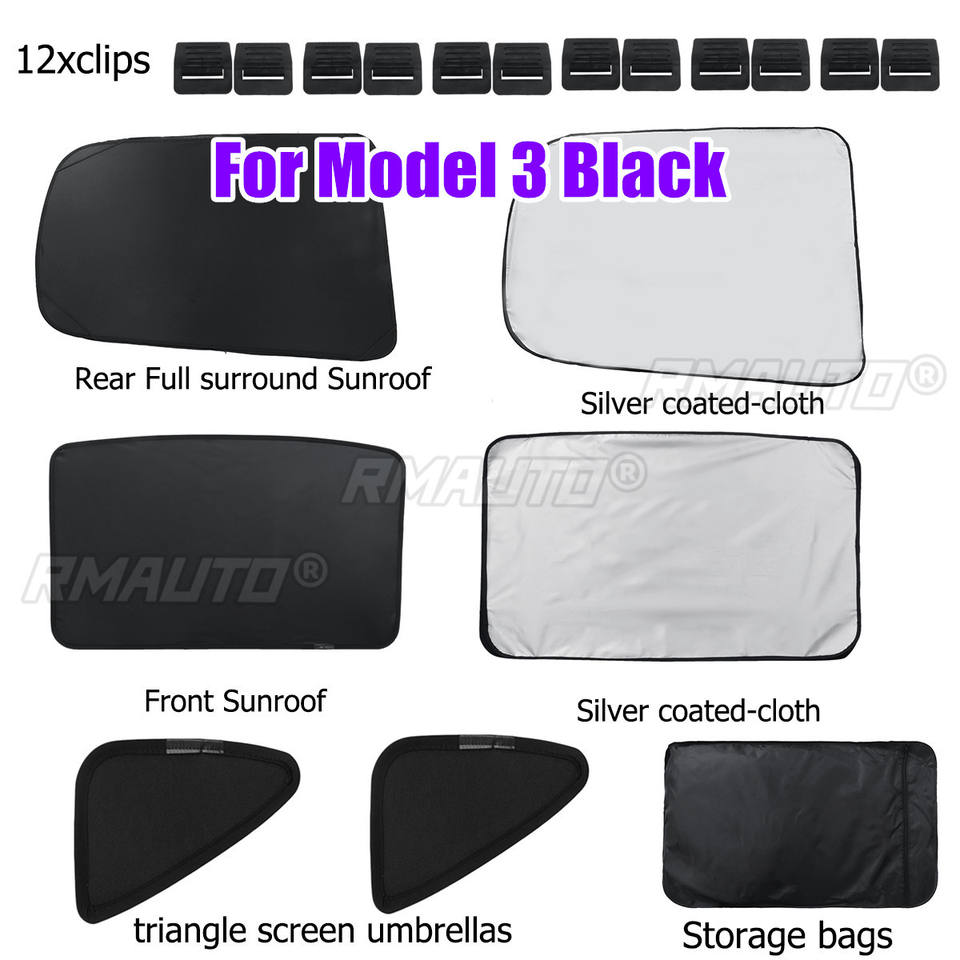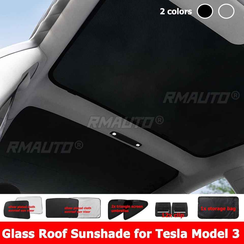 4/6 Piezas para Tesla Model 3 / Model Y 2021, Parasoles Delanteros y Traseros para Techo Solar, Red de Sombreado para Techo de Vidrio