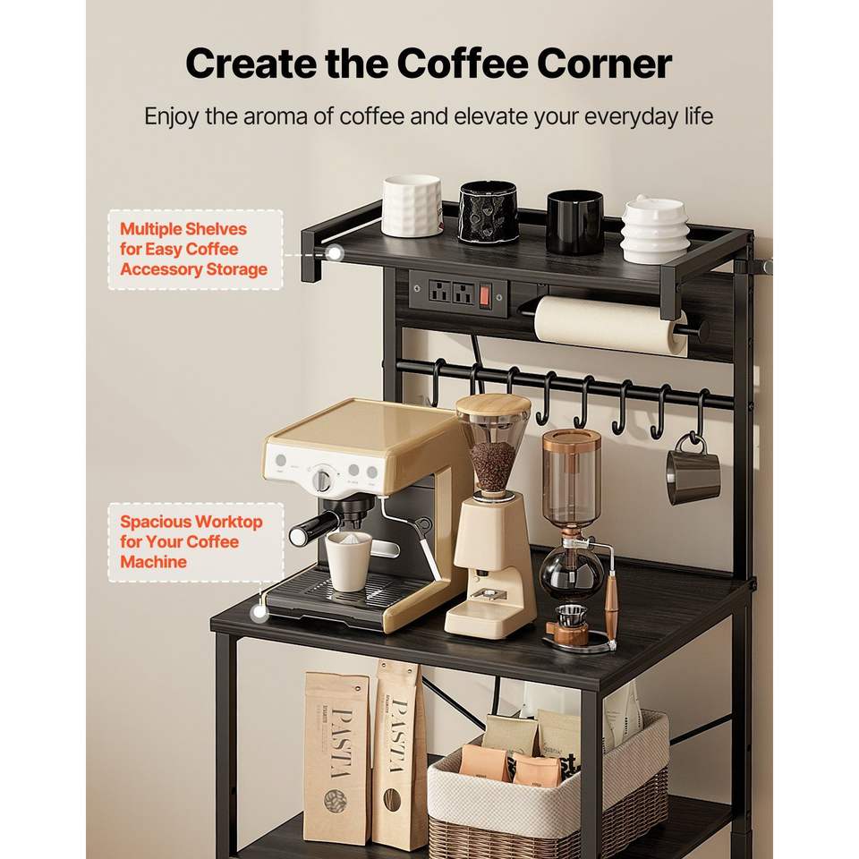 Soporte de Cocina en Forma de X con Cable de Alimentación de 4.6 pies, Barra de Soporte con 8 Ganchos en Forma de S, Soporte de Cocina con Tomacorriente para un Almacenamiento Conveniente