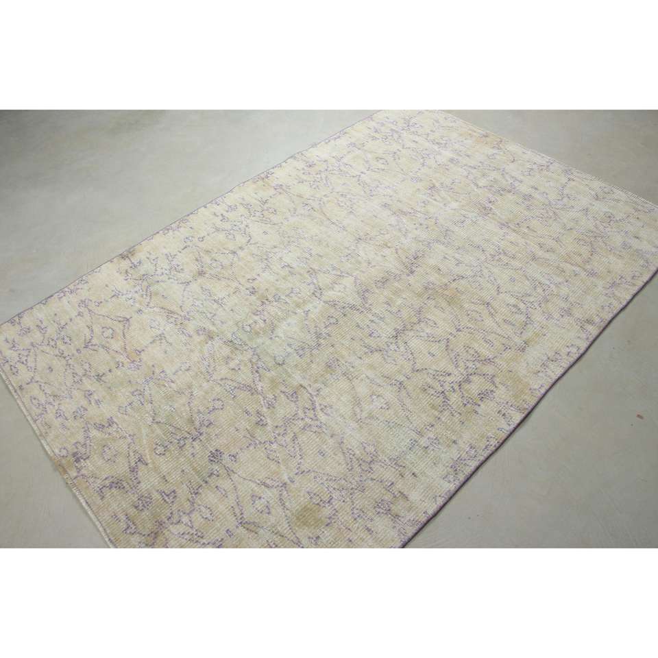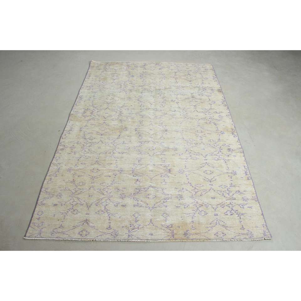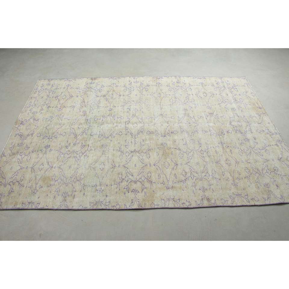 Alfombra Vintage de 4.6x6.9 pies, Alfombra Turca, Alfombra de Lana Blanca Ombré