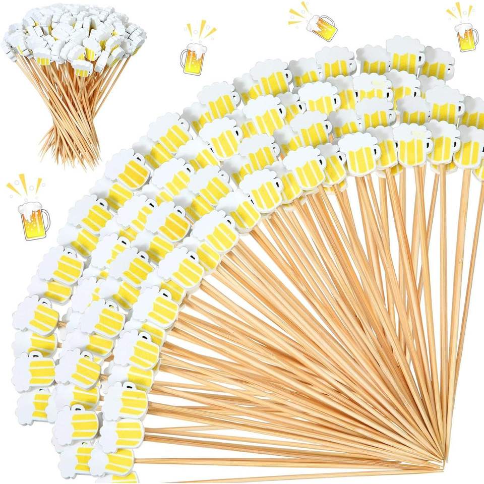 Palillos de Bambú de 4.7 Pulgadas, 100 Unidades, para Cerveza, Cócteles, Aperitivos, Decoraciones para el Oktoberfest