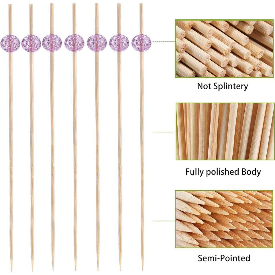 Palillos de Bambú para Cócteles de 4.7 Pulgadas, 200 Unidades, Palillos para Aperitivos, Bebidas, Postres, Brochetas para Charcutería, para Servir