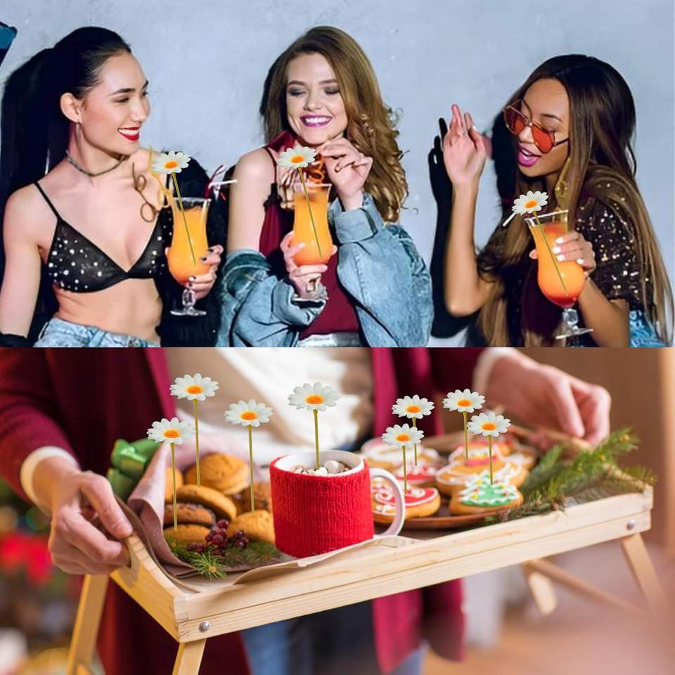 Palillos de Bambú Florales de 4.7 Pulgadas, 100 Unidades, Palillos Decorativos para Cócteles, Bodas, San Valentín y Otros Aperitivos