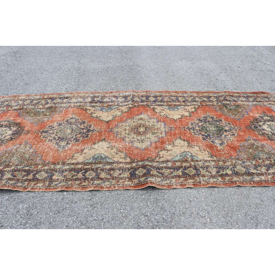Alfombra Turca de 4.7x12.5 pies, Alfombra Vintage, Alfombra Abstracta Roja y Azul