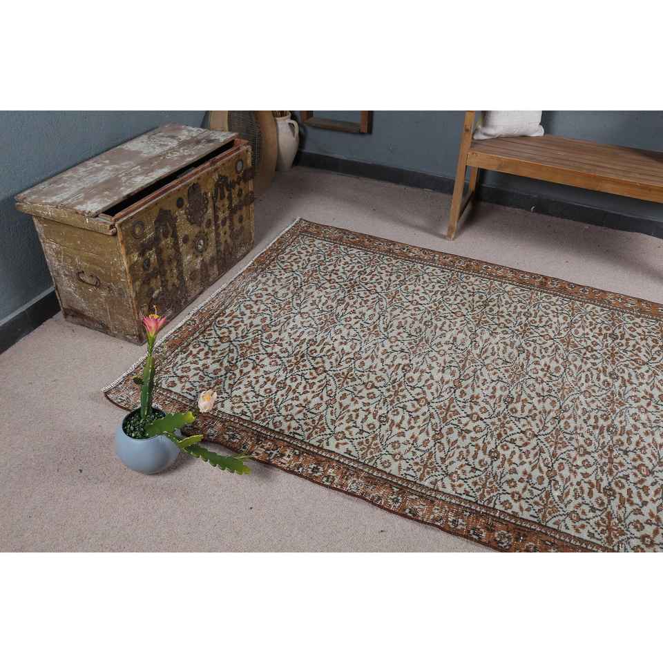 Alfombra de 4.7x8.2 pies, Alfombra Turca Vintage, Alfombra Marrón de Lana Marroquí