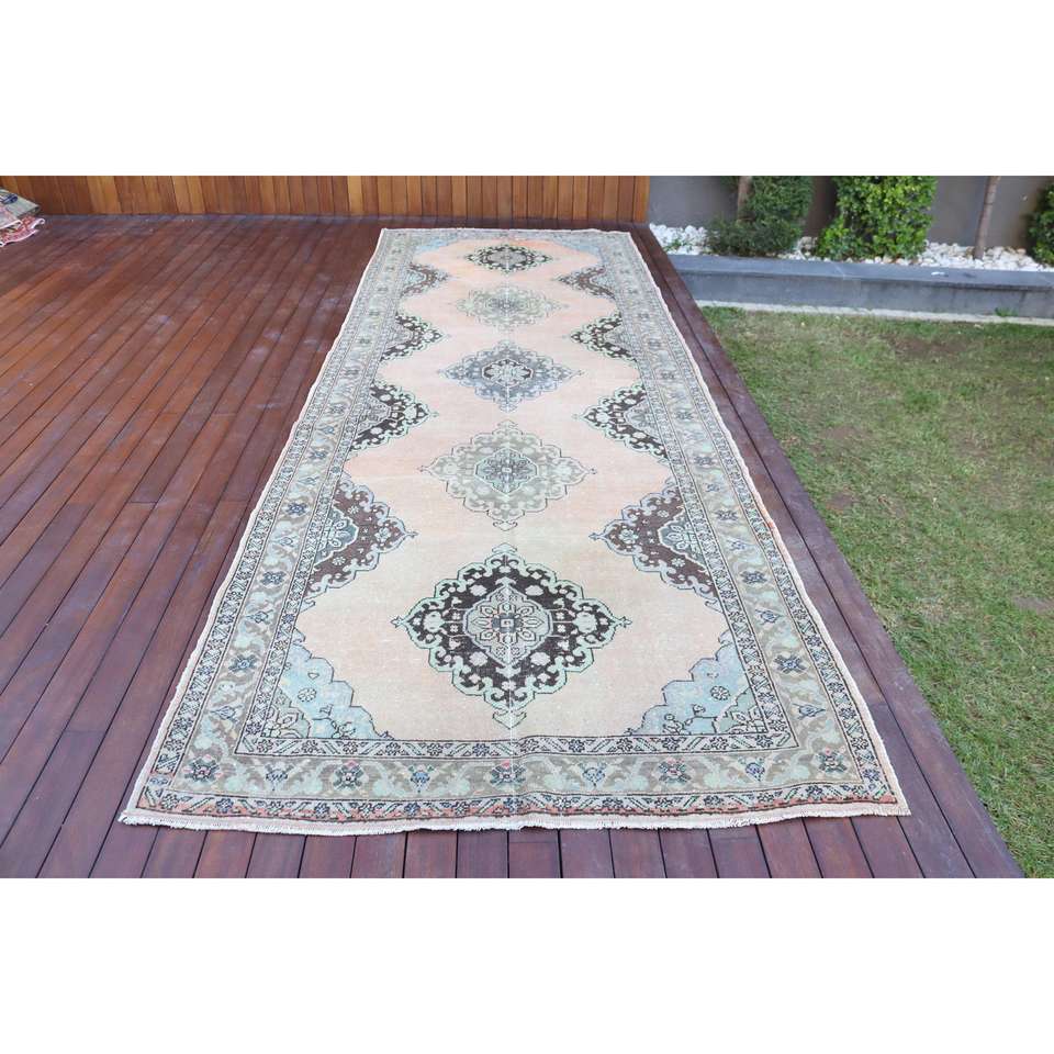 Alfombra turca de 4.8x10.5 pies, alfombra vintage, alfombra de lana con motivos de plantas y árboles azules