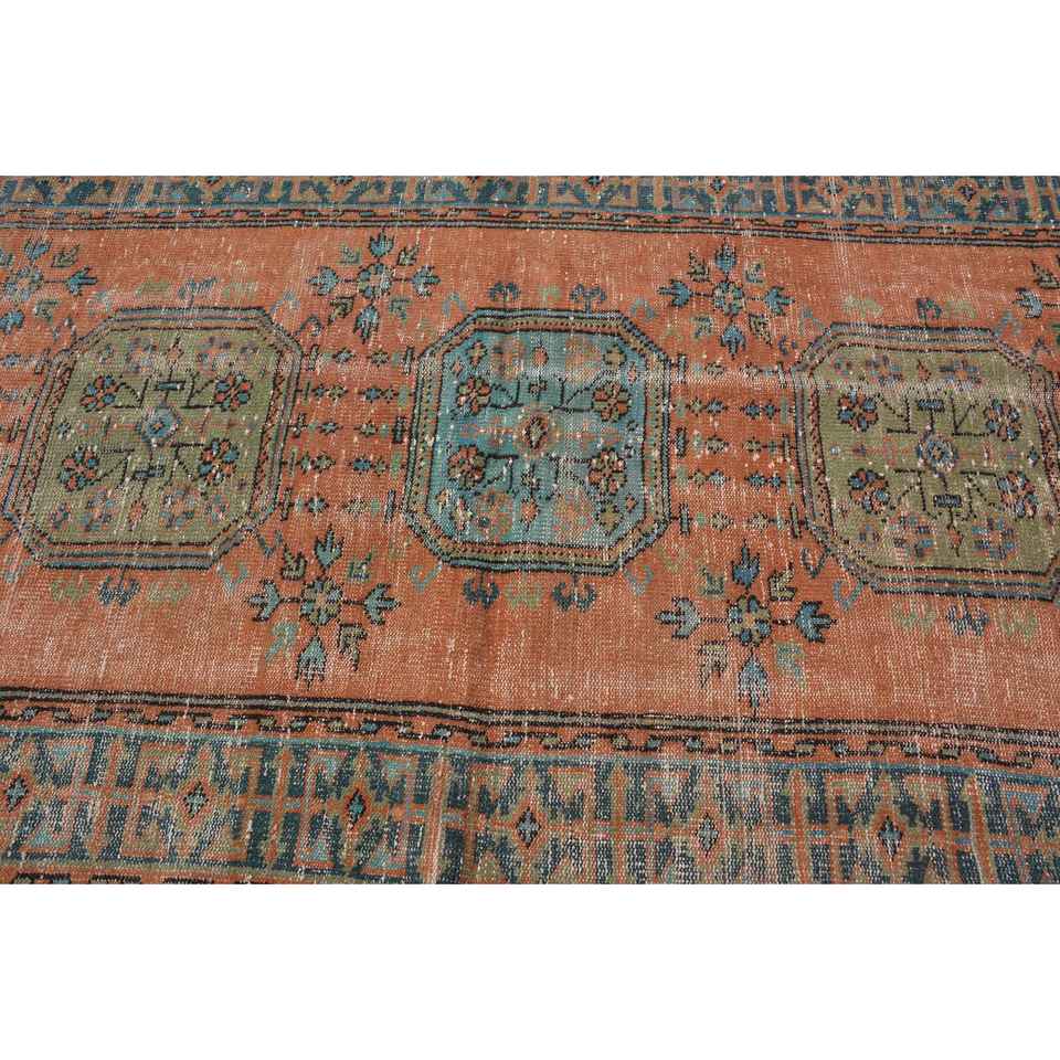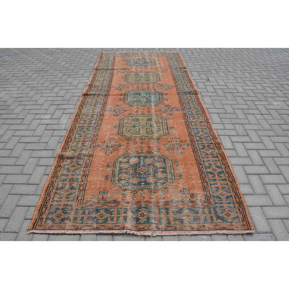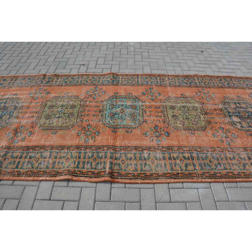 Alfombra Vintage de 4.8x11.8 pies, Alfombra Turca Grande, Alfombra de Lana con Diseño Floral Naranja