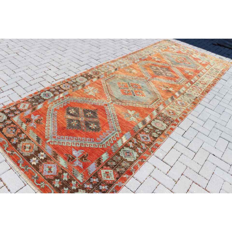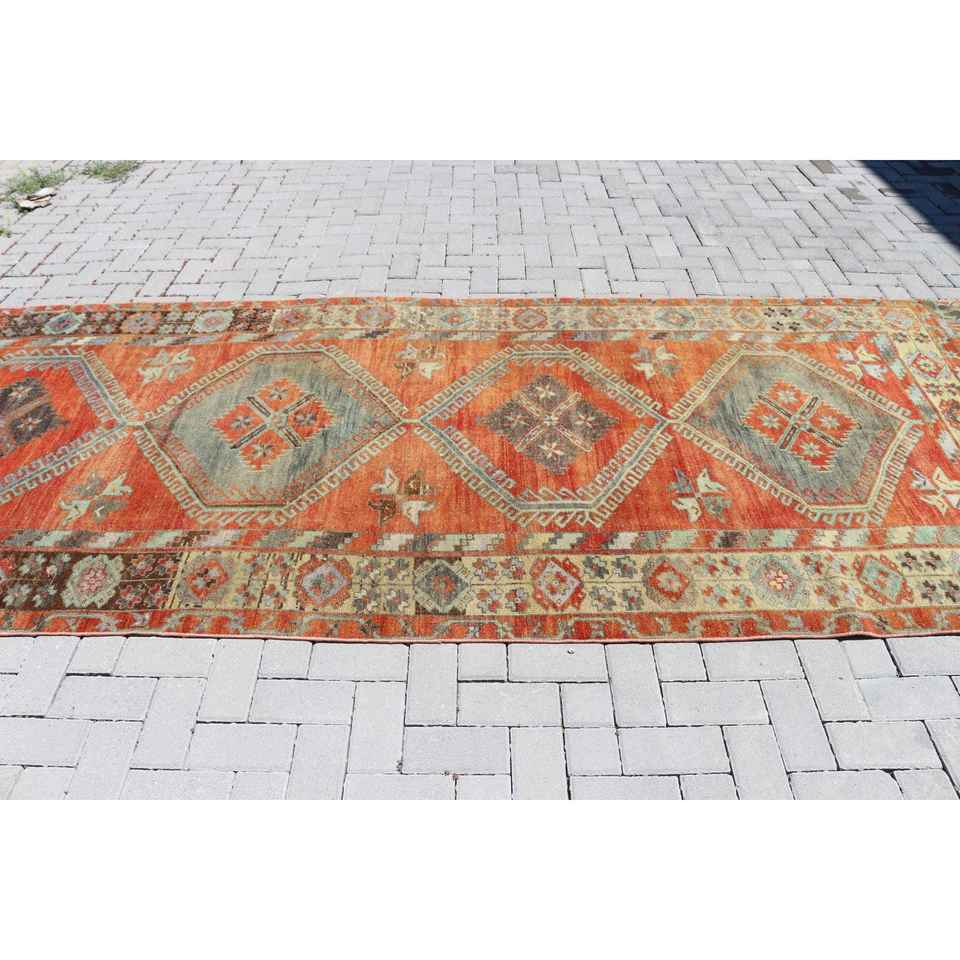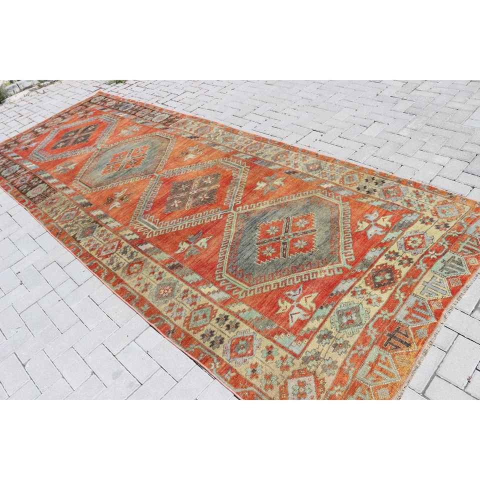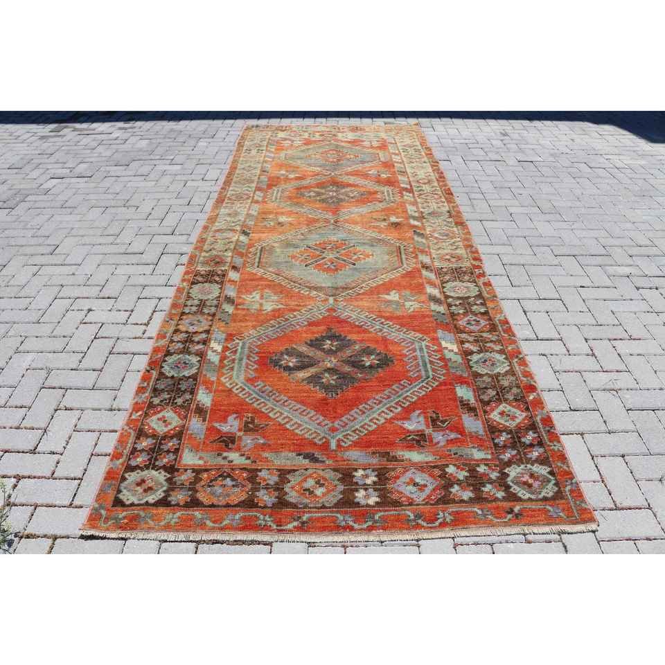 Alfombra de 4.8x12.5 pies, Alfombra Turca Vintage, Alfombra de Lana Roja