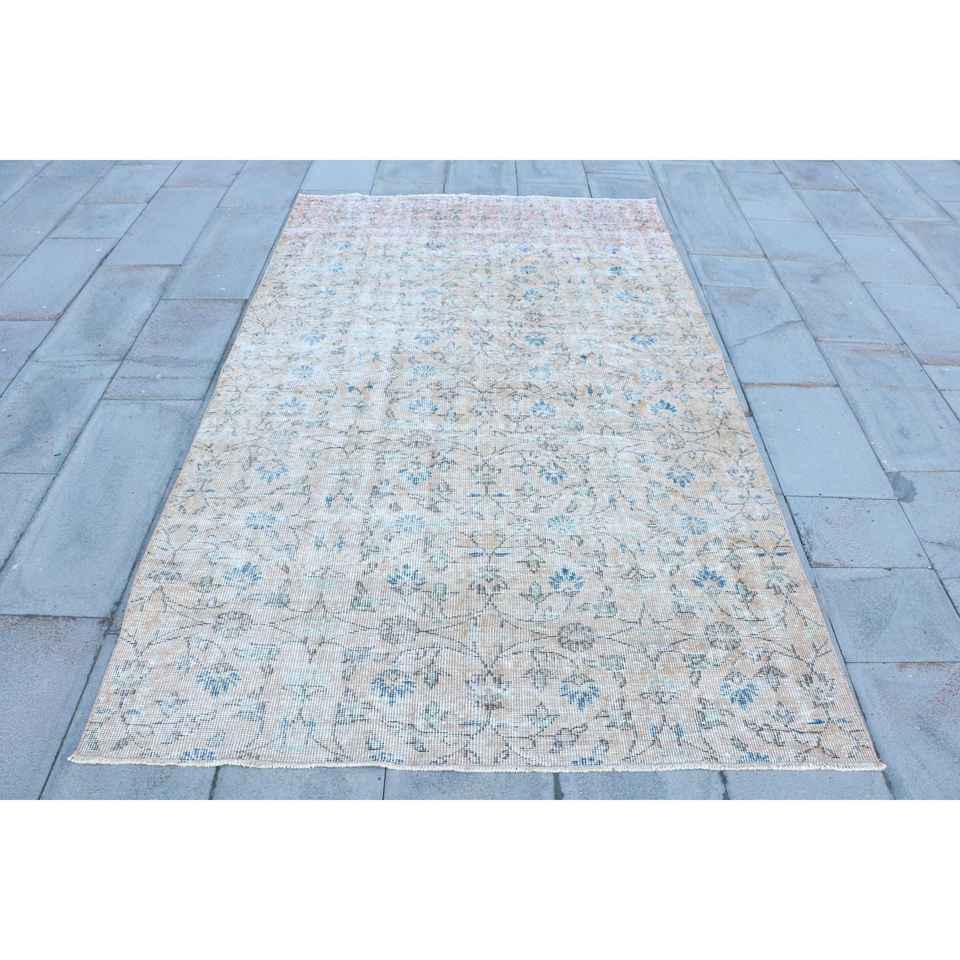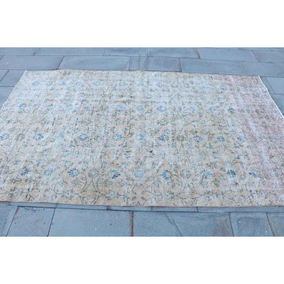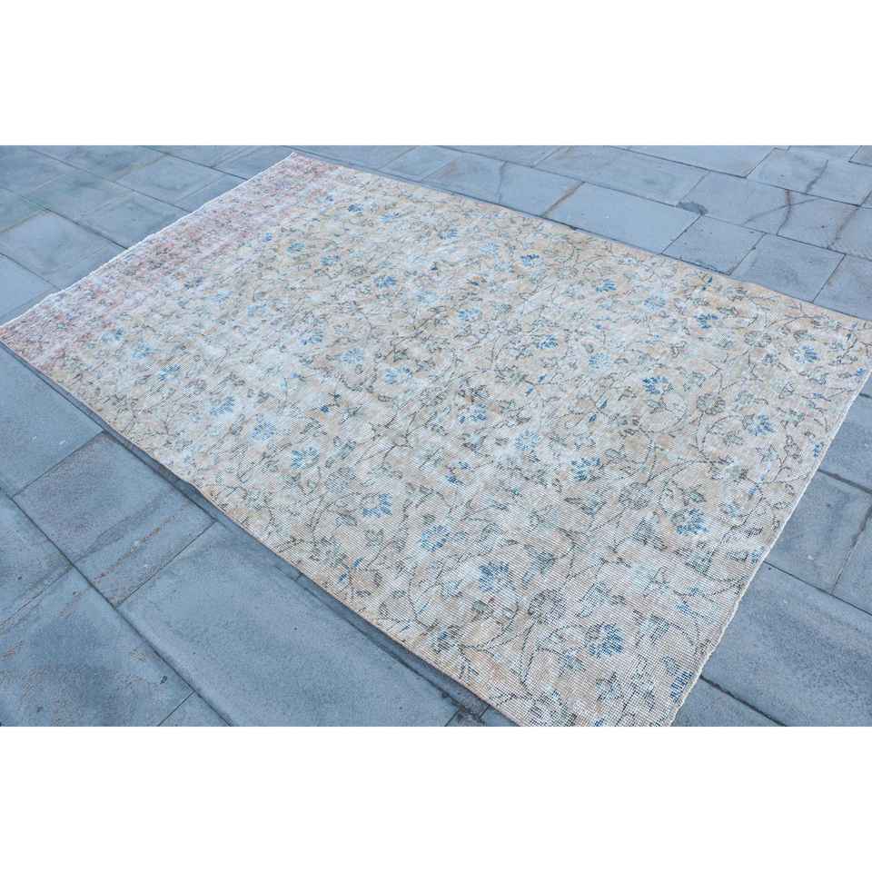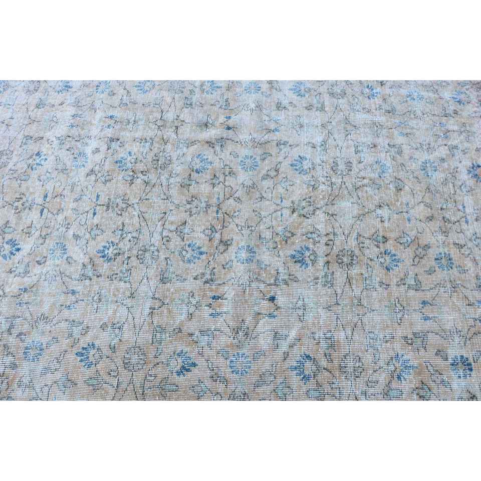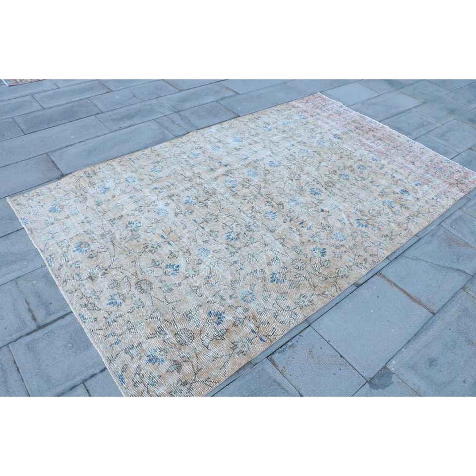 Alfombra de 4.8x7.9 pies, Alfombra Turca Vintage, Alfombra de Lana con Diseño Floral Azul