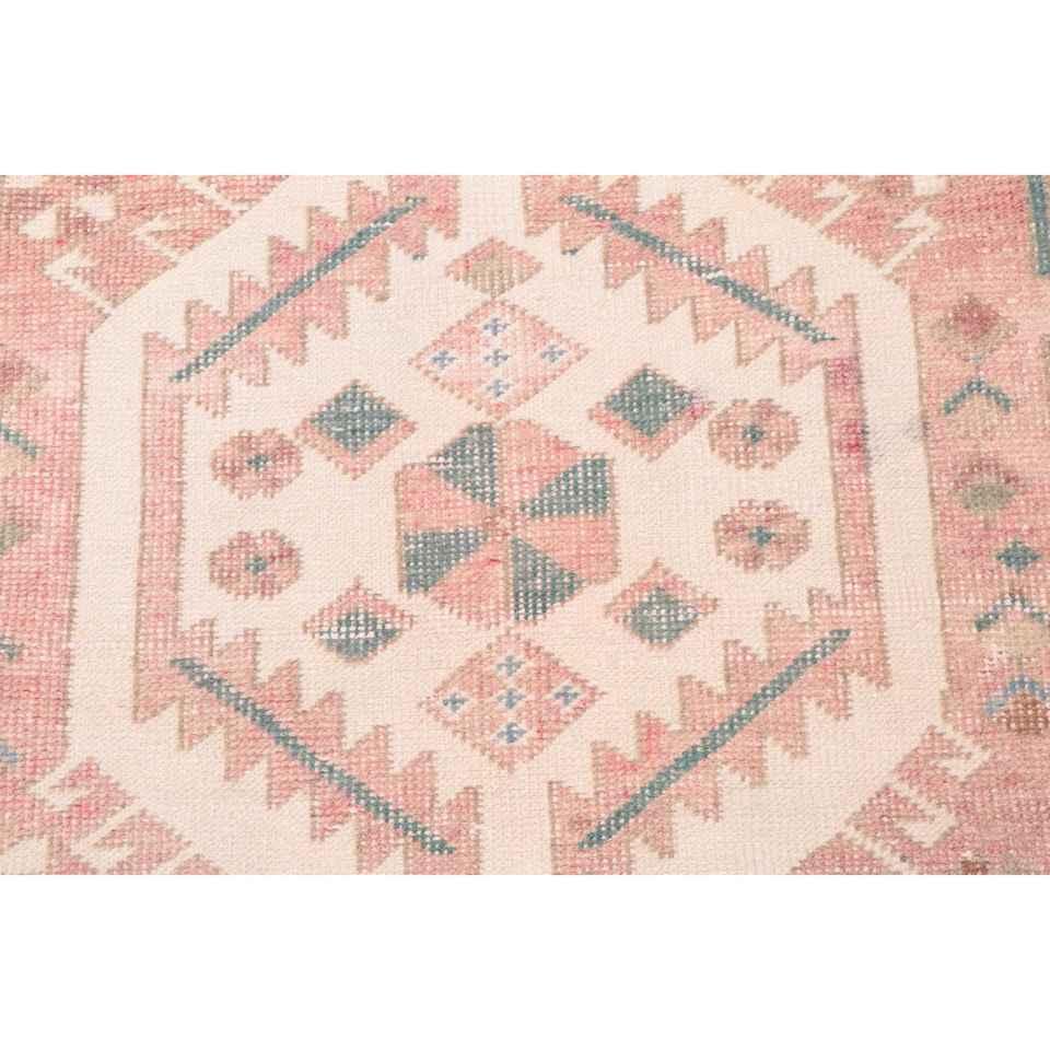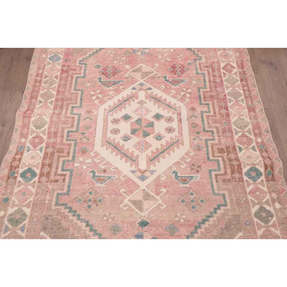 Alfombra Oriental Turca Vintage Roja y Azul de Lana, 4.8x7 pies, Diseño de Patchwork Ecológico con Respaldo de Látex