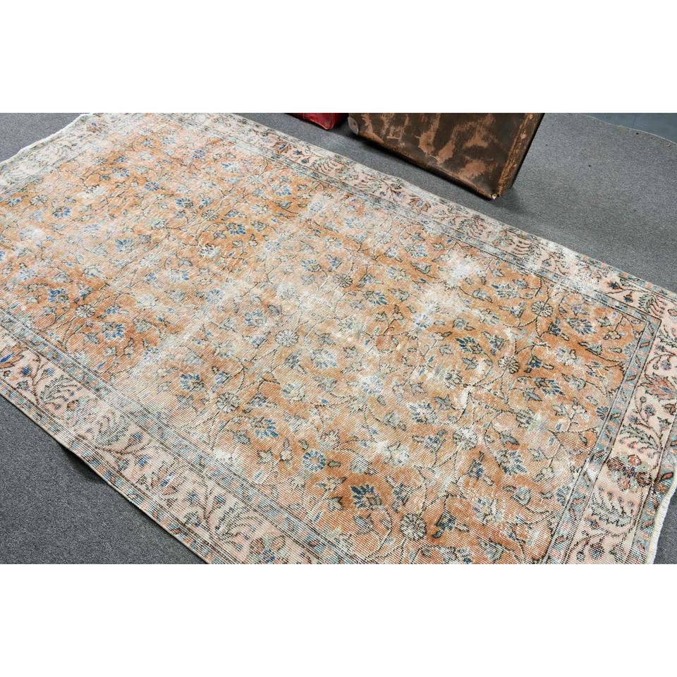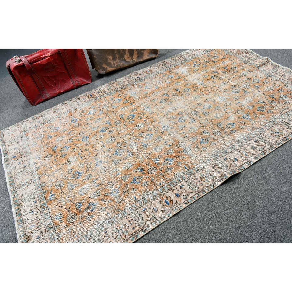 Alfombra Vintage de 4.8x8.4 pies, Alfombra Turca Grande, Alfombra con Estampado Animal Azul