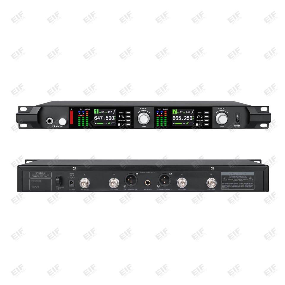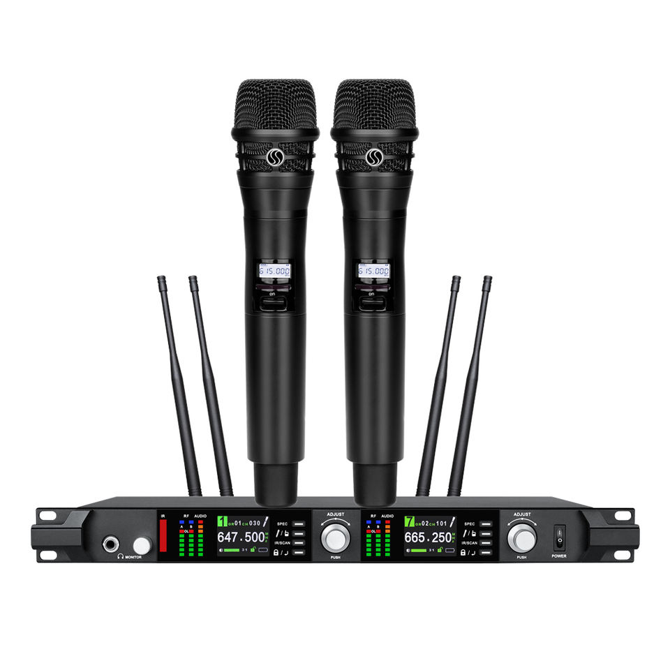 Micrófonos inalámbricos UHF de doble canal metálicos con 4 antenas, señal estable a 120 metros de distancia, ADX800, ideales para iglesias.