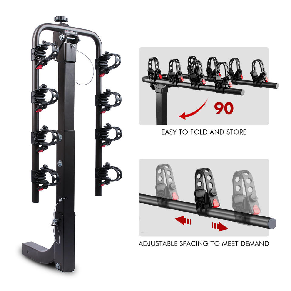 Receptor de estante de 4 bicicletas, enganche de remolque, portador de bicicleta para coches, camiones, SUV, furgonetas, RV, accesorios para automóviles