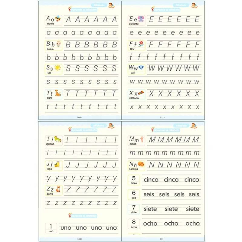 Lote de 4 libros 'Magic Writing' en español, cuaderno de caligrafía Montessori reutilizable para niños, educativo para practicar letras caligráficas