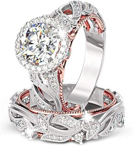 Anillo Clásico de Plata de Ley 925 con Diseño Calado, Corte Halo en Oro Rosa de 4 Quilates, Anillo de Compromiso, Boda, Fiesta, Topacio, Anillos Finos para Mujer