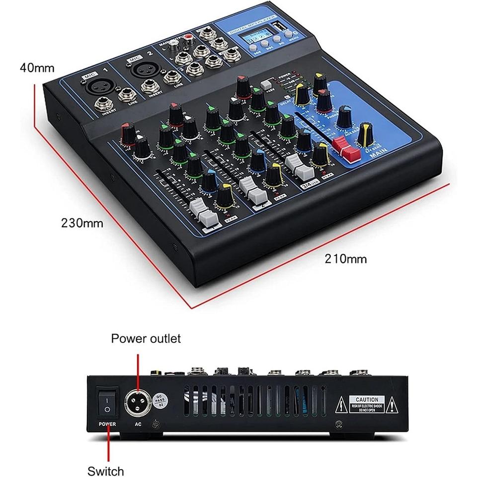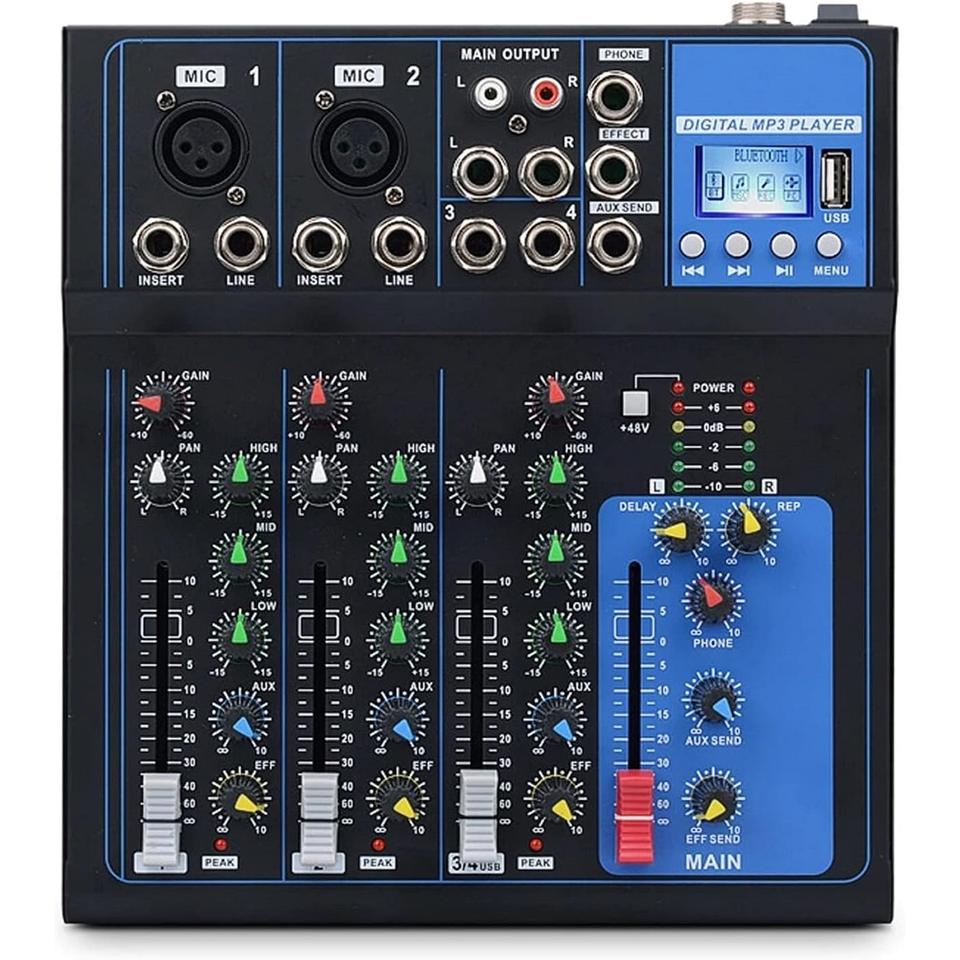 Mezclador de audio de 4 canales con Bluetooth, USB y reproductor digital MP3 para grabación y mezcla en vivo