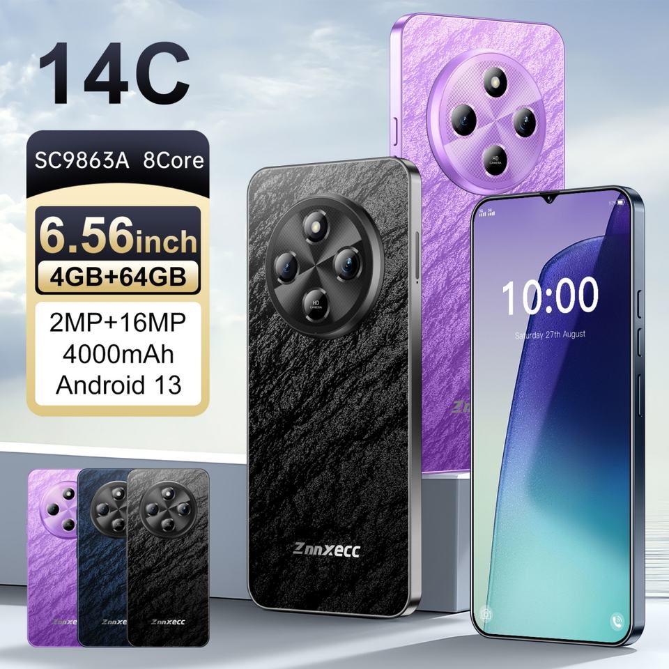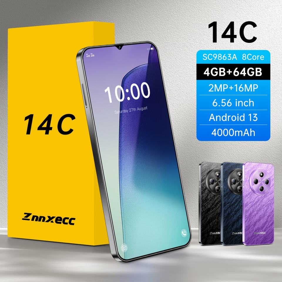 Teléfono Móvil 4G de Alto Rendimiento con 4 Núcleos ZNNXECC 14C, Económico, Red Completa 3G, 4GB+64GB, Doble Tarjeta SIM, Pantalla de 6.6 Pulgadas de Alta Definición, LTE, Francés