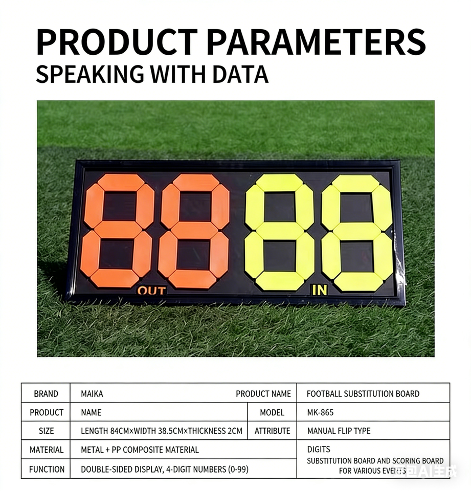 Tablero de sustitución de fútbol de doble cara con 4 dígitos | Material PP Duradero | Fácil Montaje | Tamaño Grande Mediano | Marcador de Partidos