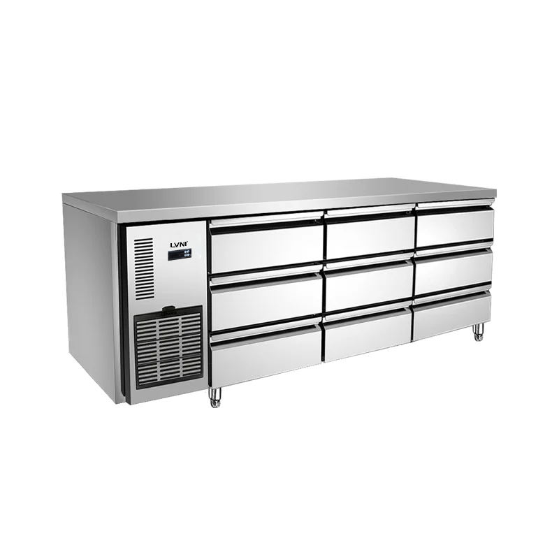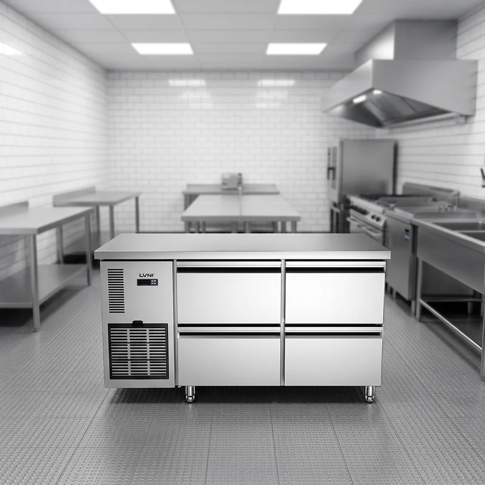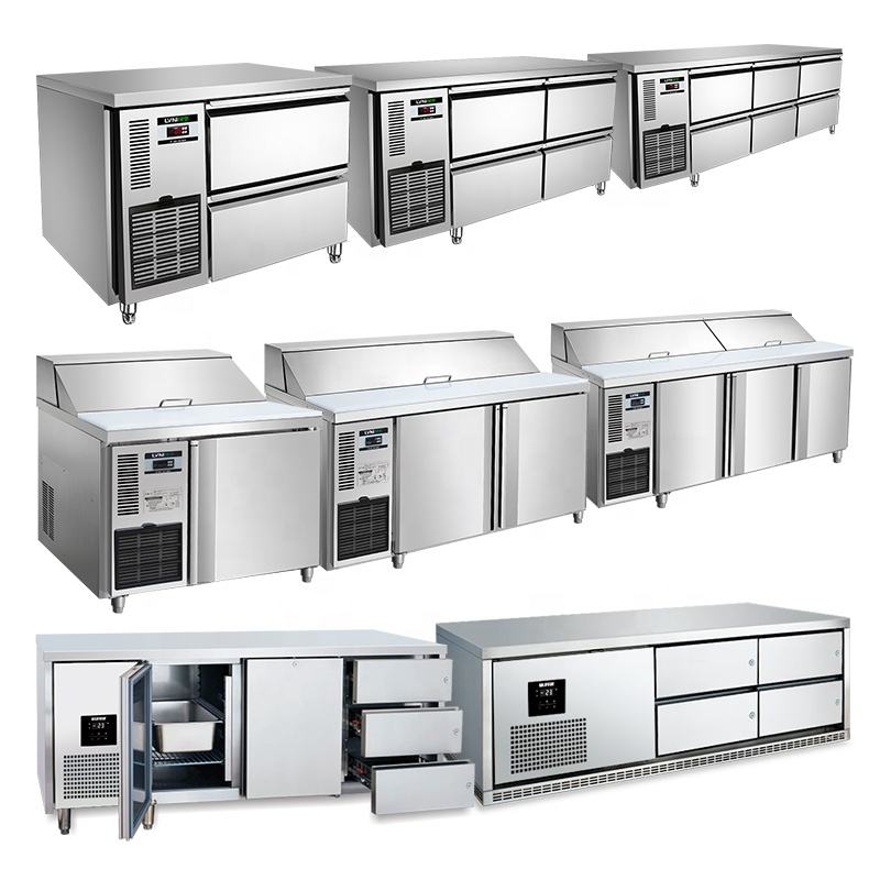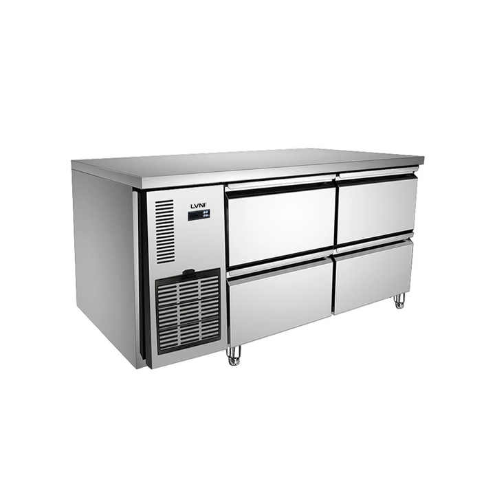 Cajones de mostrador de refrigerador comercial con 4 puertas de acero inoxidable Modo de refrigeración por aire debajo del cajón del congelador de mostrador