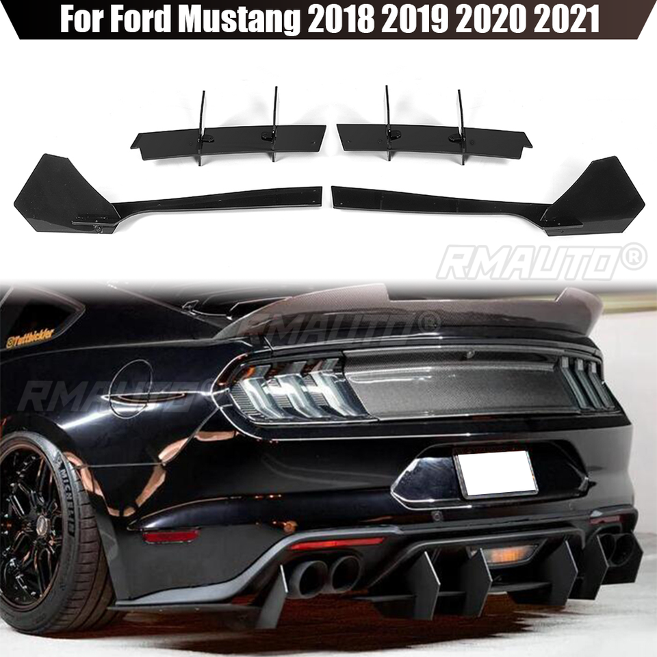 Difusor de Parachoques Trasero de 4 Aletas, Divisores Laterales Traseros, Alerón para Ford Mustang 2018 2019 2020 2021, Accesorios para Automóviles