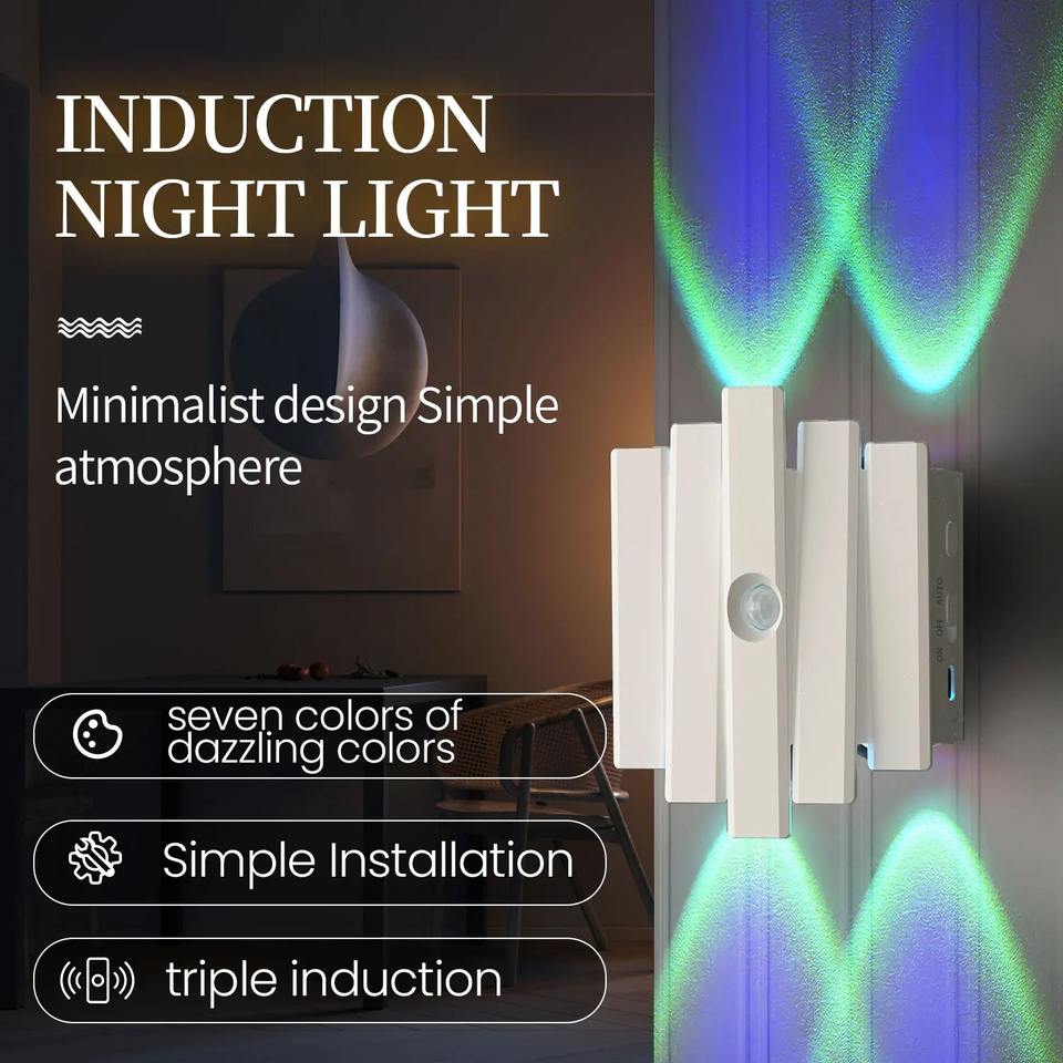 Lámpara Nocturna LED de 4 Cabezas con Sensor de Movimiento, Lámpara de Pared RGB con Gradiente, Luz Ambiental Recargable, Regulable, Magnética, para Interiores