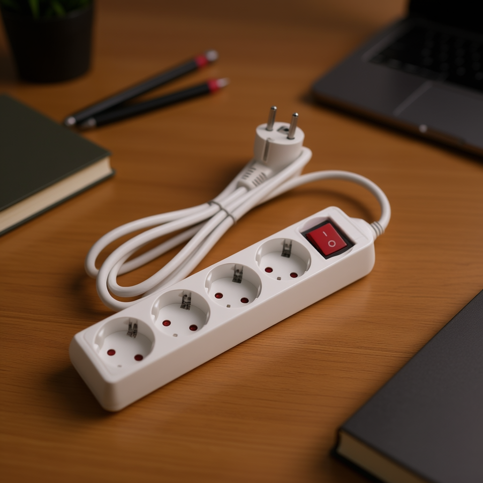 Regleta de 4 tomas con interruptor, cable de 1.5M H05VV-F 3G1.0mm, tipo rectangular de pie de plástico