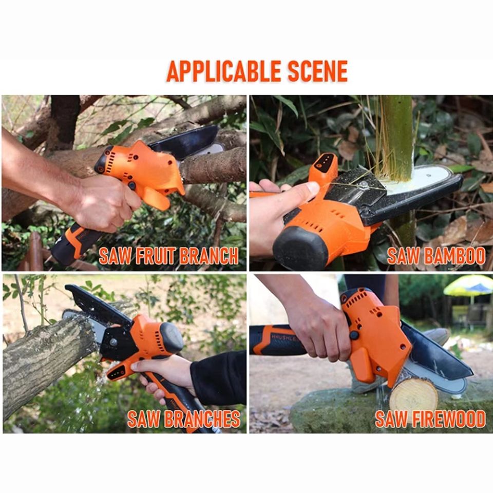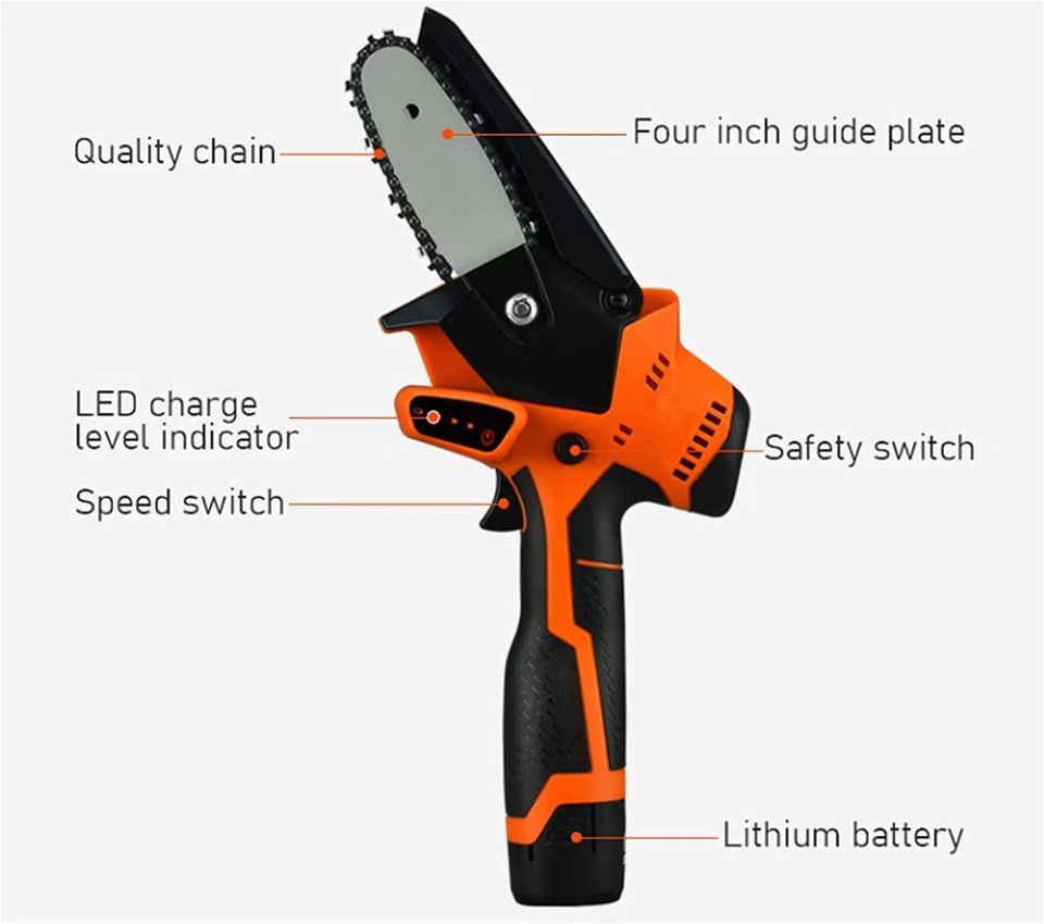 Motosierra eléctrica portátil de 4 pulgadas y 12V, cortadora de cadena de árbol con batería