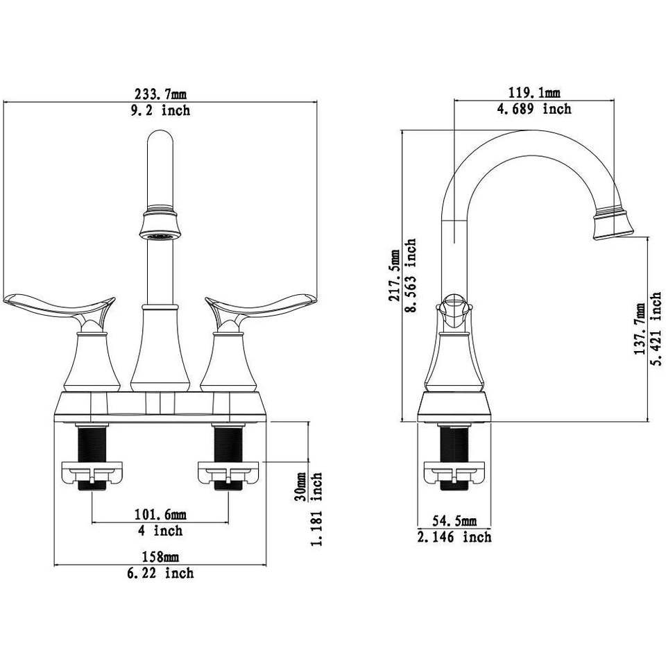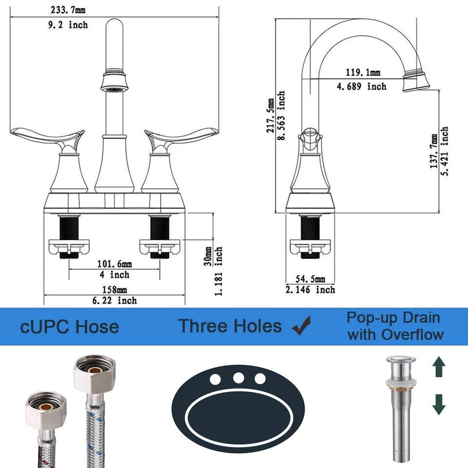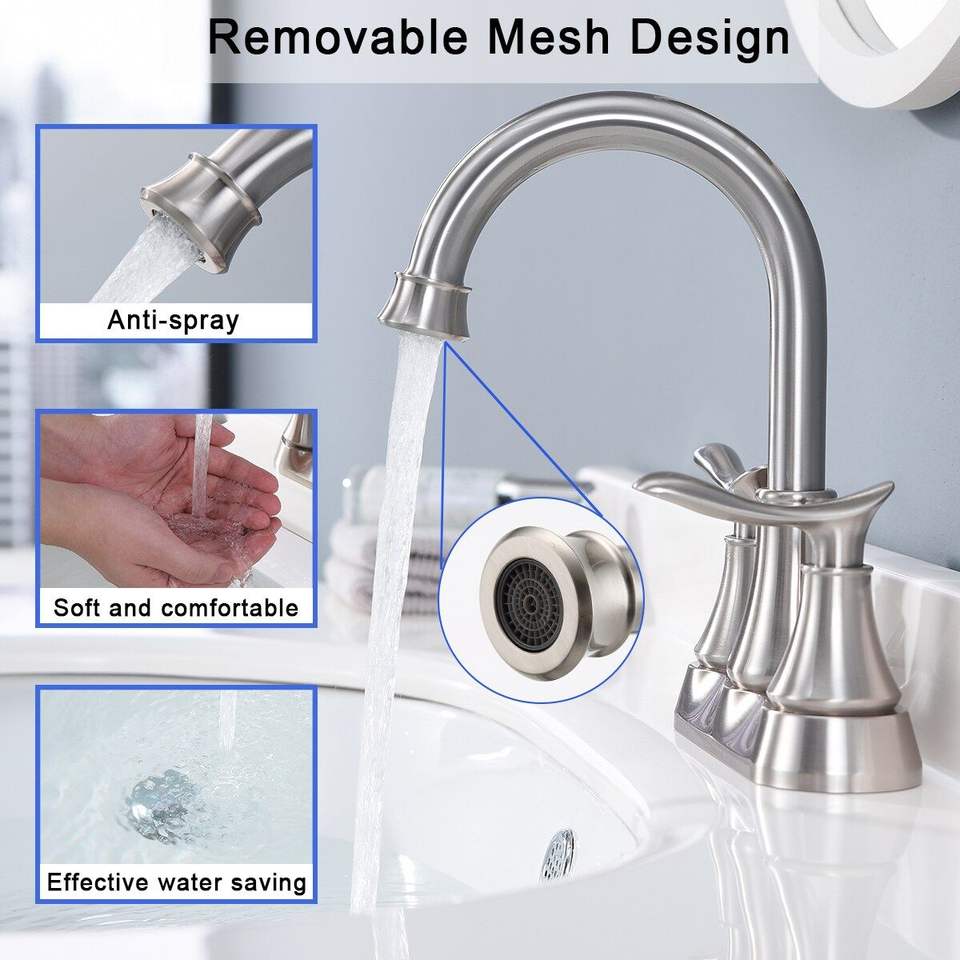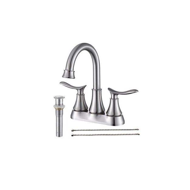 Grifo de Baño de 4 Pulgadas con 2 Manijas, Acabado Níquel Cepillado, con Válvula de Desagüe Pop-up y Mangueras de Suministro, Accesorios para Grifos de Lavabo
