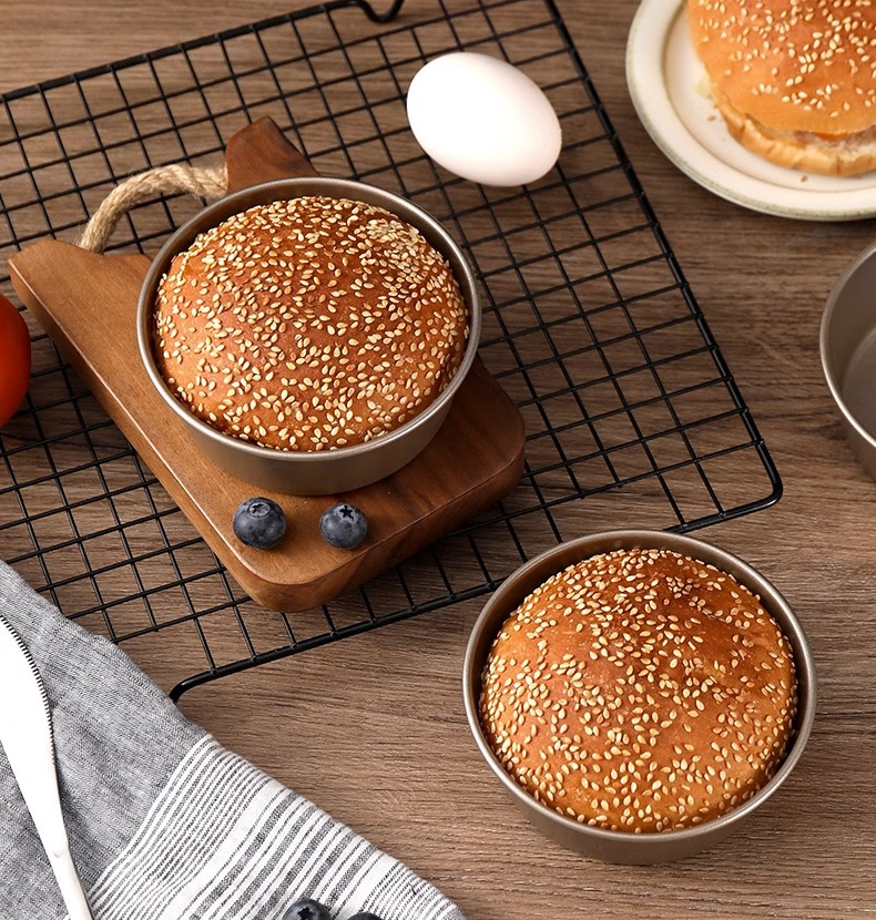 Prensa de hamburguesas de 4 pulgadas, Mini pan de perro caliente, bollo de hamburguesa para hornear queso Fromage, plato redondo para asar, molde para pastel