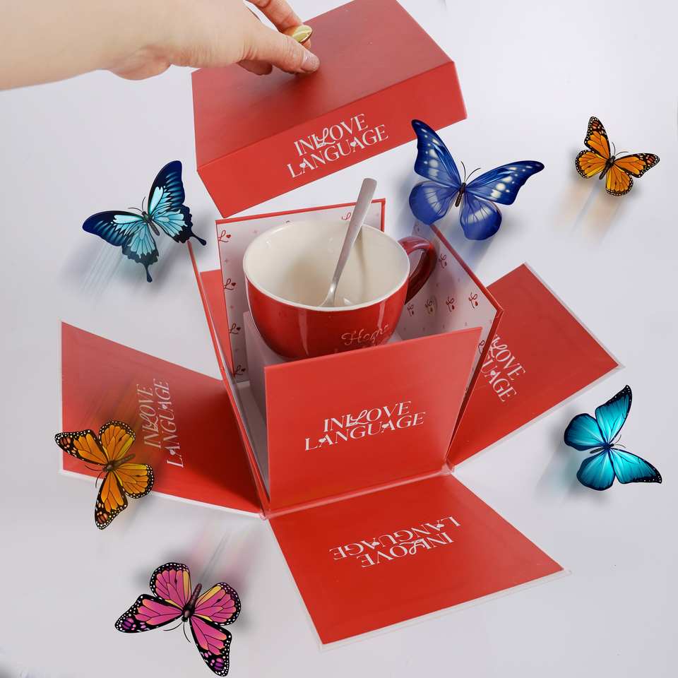 Caja de Pastel de 4 Pulgadas, Caja Sorpresa Explosiva Vacía, Caja de Regalo de Navidad o Aniversario con Mariposa Voladora