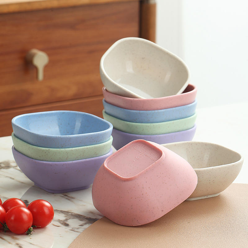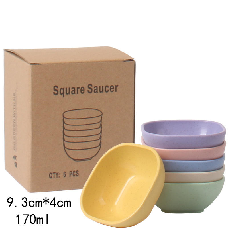 Platos Cuadrados de Plástico Pulido de 4 Pulgadas para Condimentos, de Paja de Trigo, para Salsas de Barbacoa, Soja y Vinagre