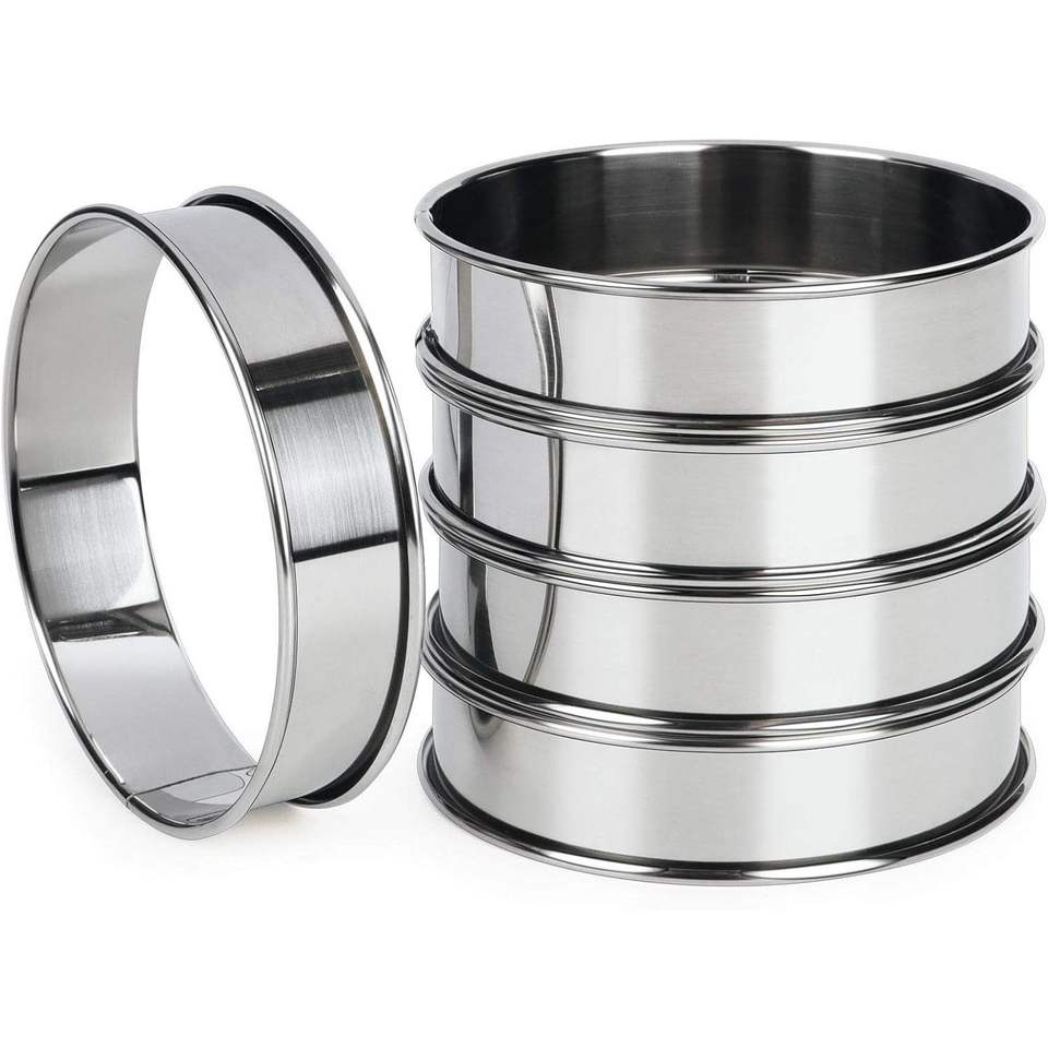 Juego de moldes para hornear de acero inoxidable de 4 pulgadas, doble borde, antiadherentes, para tartas, muffins, crumpets, herramientas para muffins ingleses